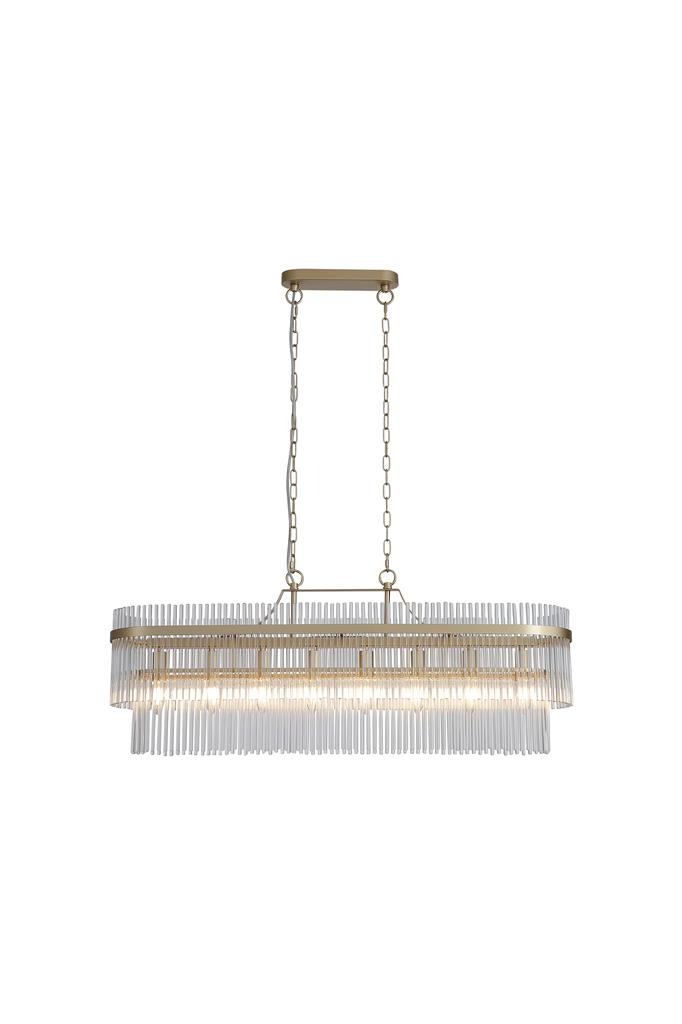 Een klassieke hanglamp uit de Lara collectie van het merk Searchlight. De lamp is een stijlvolle blikvanger die elke ruimte verrijkt met een gevoel van luxe en klasse. Fijne glazen staafjes en een subtiele goudkleurige band die het ontwerp samenbrengt en het warme licht prachtig weerspiegelt. Dankzij de zachte sfeervolle uitstraling is deze lamp ideaal voor chique interieurs. Goed toepasselijk boven de eetttafel. De Lara hanglamp tilt de ruimte moeiteloos naar een hoger niveau. Stijlvol te combineren met de rest van de lampen uit de gelijknamige serie. De lamp is exclusief lichtbron en geschikt voor 8x 60W en E14 fitting. In hoogte te verstellen naar wens bij installatie.