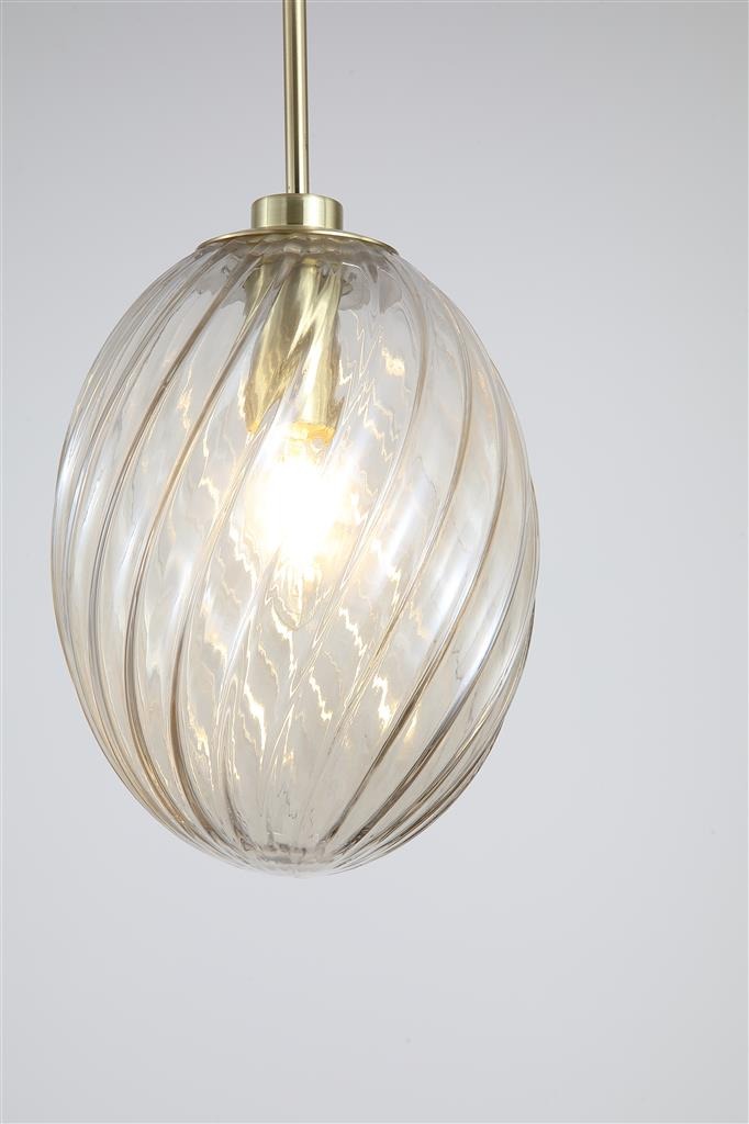 Een lamp uit de Whirl collectie van het merk Searchlight. De Whirl hanglamp heeft een champagne gekleurde gedraaide glazen bol gecombineerd met een messing armatuur. Het glas zorgt voor een warme en sfeervolle verlichting. Deze lamp is ideaal voor boven de eettafel of in een open ruimte en geeft het interieur een luxe uitstraling. De lamp is exclusief lichtbron en is geschikt voor maximaal 60W en E14 fitting.