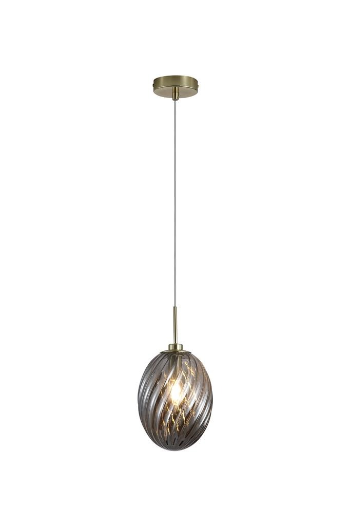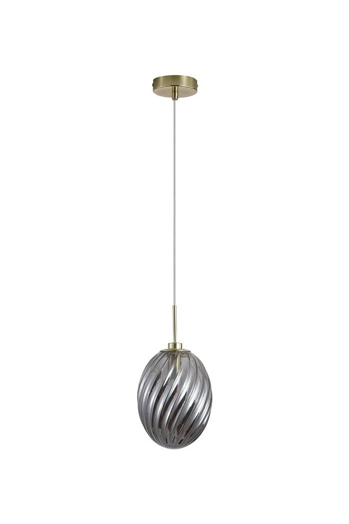 Een lamp uit de Whirl collectie van het merk Searchlight. De Whirl hanglamp heeft een rookglas gedraaide bol gecombineerd met een messing armatuur. Het glas zorgt voor een warme en sfeervolle verlichting. Deze lamp is ideaal voor boven de eettafel of in een open ruimte en geeft het interieur een luxe uitstraling. De lamp is exclusief lichtbron en is geschikt voor maximaal 60W en E14 fitting.