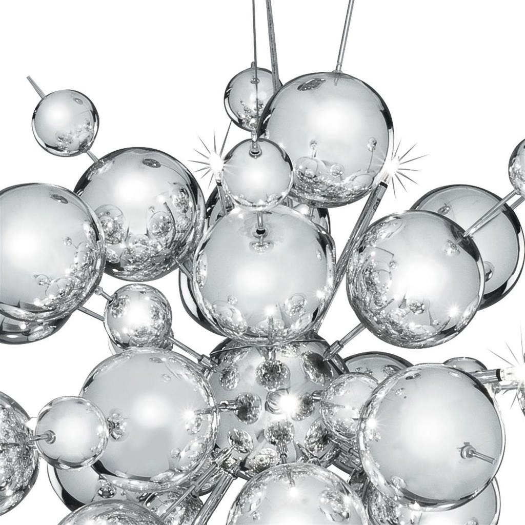 De Molecule hanglamp uit de collectie van Searchlight. Molecule is een dynamische hanglamp met twaalf lichtpunten en een uitgesproken modern ontwerp. Vanuit de centrale bol stralen chromen bollen, afgewisseld met lichtarmen waarvan de uiteinden zacht oplichten. Dit zorgt voor een indrukwekkend lichteffect dat perfect past in elk eigentijds interieur. De opvallende hanglamp is ideaal voor verschillende soorten ruimtes. De lamp is inclusief LED lichtbronnen van 12x 1,5 watt en 130 lumen in totaal.