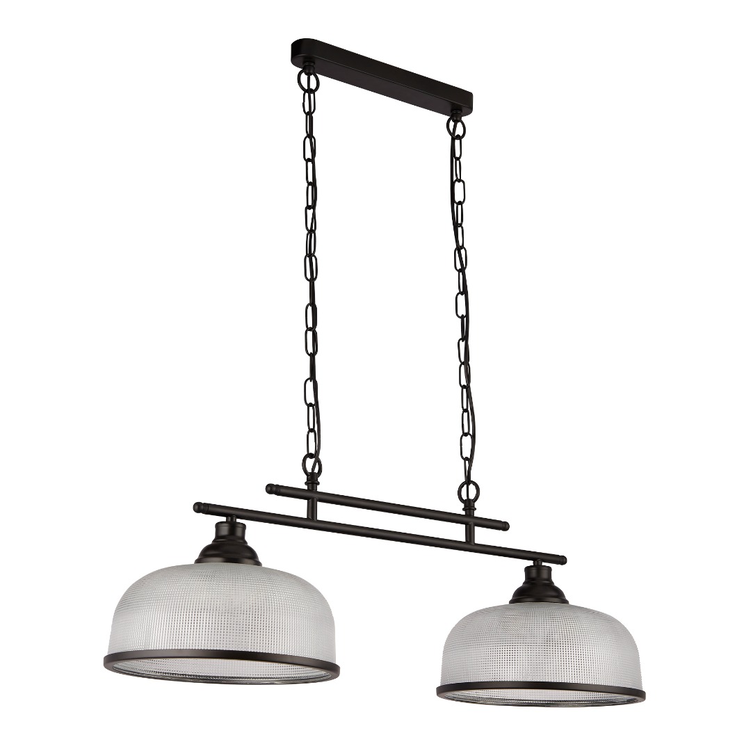 Een hanglamp uit de Highworth collectie van het merk Searchlight. De Highworth is een stijlvolle en opvallende hanglamp die perfect past boven een kookeiland, eettafel of in de woonkamer. De lamp combineert strak vormgegeven metaal met glas in ''holophane-stijl'' (geribbeld glas) uitgevoerd in een mat zwarte kleur. Dankzij het ontwerp sluit deze lamp moeiteloos aan bij zowel moderne als klassieke interieurs. De lamp is geschikt voor twee lichtbronnen van maximaal 60 watt met E27 fitting. De lamp is bij installatie in hoogte verstelbaar.