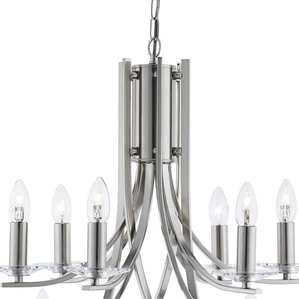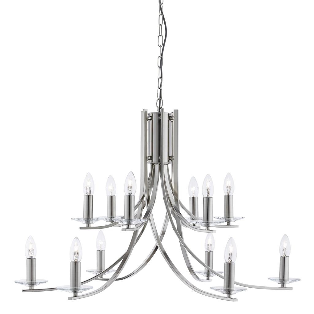 Een hanglamp uit de Ascona collectie van het merk Searchlight. Deze 12-lichts kroonluchter in een zilveren kleur combineert een klassieke stijl met een moderne uitstraling. Met een diameter van 88 cm en twaalf lamphouders waar (optioneel) kaarslampen mooi tot hun recht komen, trekt deze lamp gegarandeerd de aandacht in elke ruimte waar hij wordt toegepast. Een stijlvolle en opvallende hanglamp die perfect past in de hal, boven de eettafel of in de woonkamer. De lamp is exclusief en geschikt voor 12 lichtbronnen van maximaal 60 watt en E14 fitting. Bij installatie in hoogte verstelbaar.