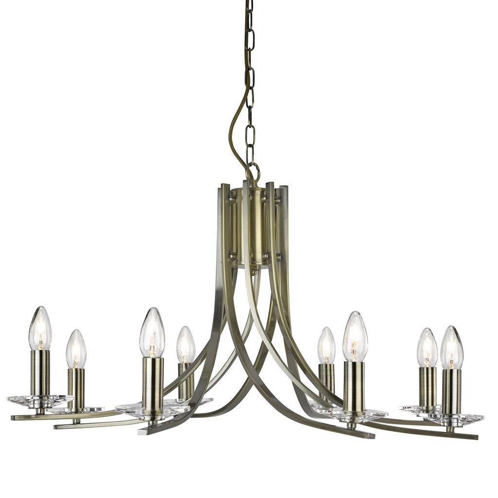 Een hanglamp uit de Ascona collectie van het merk Searchlight. Deze 8-lichts kroonluchter in een messing kleur combineert een klassieke stijl met een moderne uitstraling. Met een diameter van 75 cm en acht lamphouders waar (optioneel) kaarslampen mooi tot hun recht komen, trekt deze lamp gegarandeerd de aandacht in elke ruimte waar hij wordt toegepast. Een stijlvolle en opvallende hanglamp die perfect past in de hal, boven de eettafel of in de woonkamer. De lamp is exclusief en geschikt voor 8 lichtbronnen van maximaal 60 watt en E14 fitting. Bij installatie in hoogte verstelbaar.
