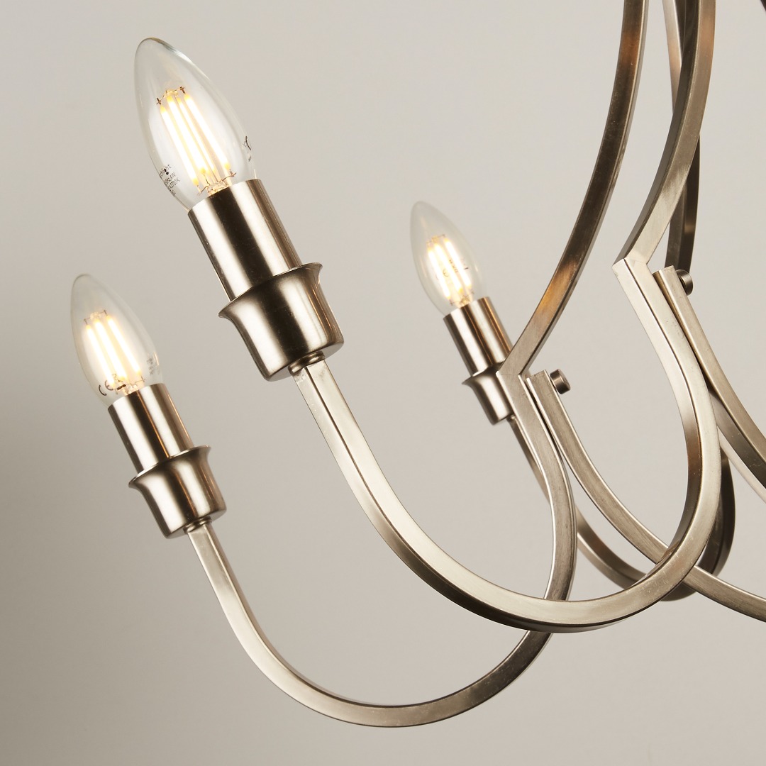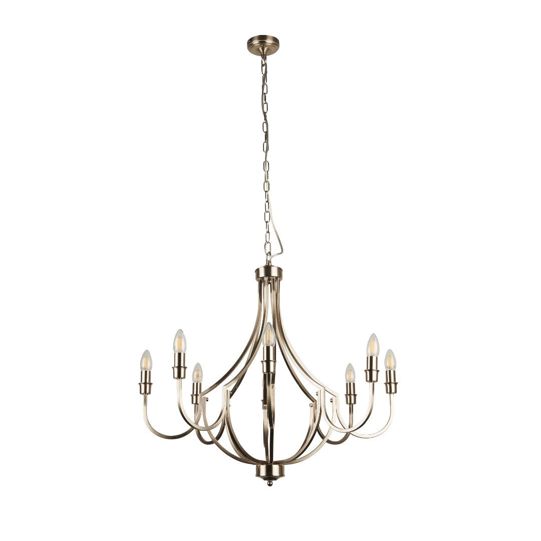 De 8-lichts Lodge hanglamp van het merk Searchlight. Deze hanglamp combineert een elegante vorm met een opvallend design en vormt een prachtige toevoeging aan elke ruimte. Gemaakt van metaal en afgewerkt in een stijlvolle satijn zilveren kleur voegt deze hanglamp direct een vleugje verfijning toe. De lamp wordt geleverd exclusief lichtbronnen en is geschikt voor E14 fitting en max. 8x 60 watt. Bij installatie in hoogte te verstellen.