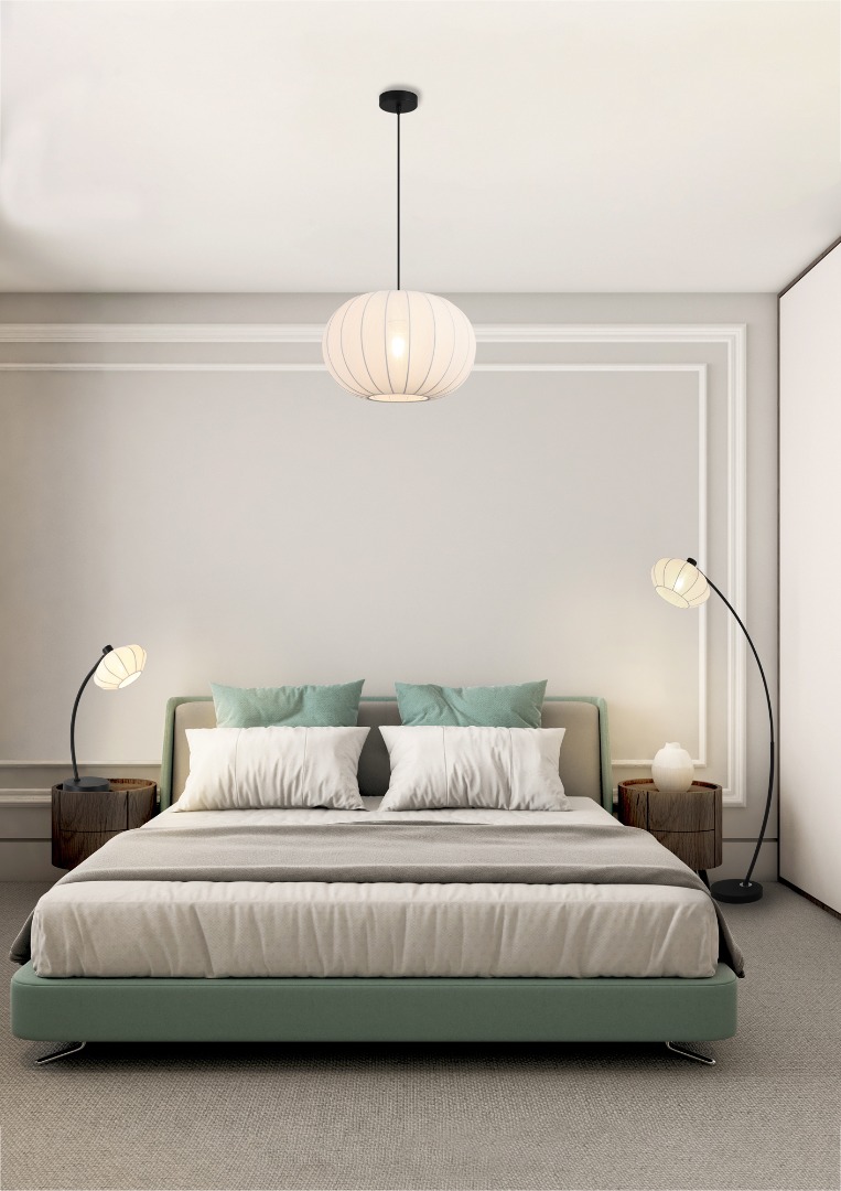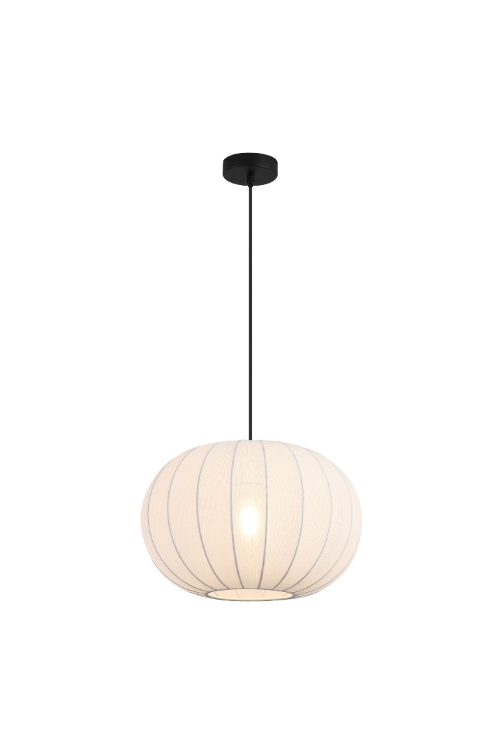 Een hanglamp van het merk Searchlight uit de Radiant collectie. De lamp heeft een mooie matzwarte ophanging en een witte stoffen kap die een natuurlijke uitstraling geeft. Zo combineert de lamp de schoonheid van de natuur met een simpel en strak ontwerp. De lamp is ideaal voor moderne woon-, slaapkamers of hallen waar zacht licht zorgt voor ontspanning. De lamp valt op zonder dat hij een kleine ruimte te vol maakt. Wordt geleverd exclusief lichtbron. De lamp is geschikt voor E27 fitting en max. 60 watt.