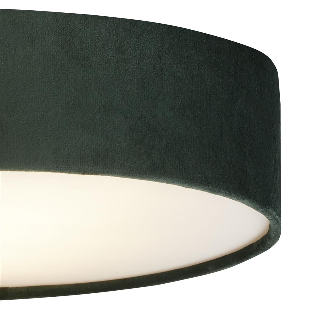 Een plafondlamp uit de collectie Drum van het merk Searchlight. De lamp is gemaakt van staal, plastic en groenkleurig velours. De lamp wordt geleverd exclusief lichtbronnen met een E27 fitting geschikt voor max. 2x 15 watt. De kleur van de lamp geeft een elegant effect aan het interieur.