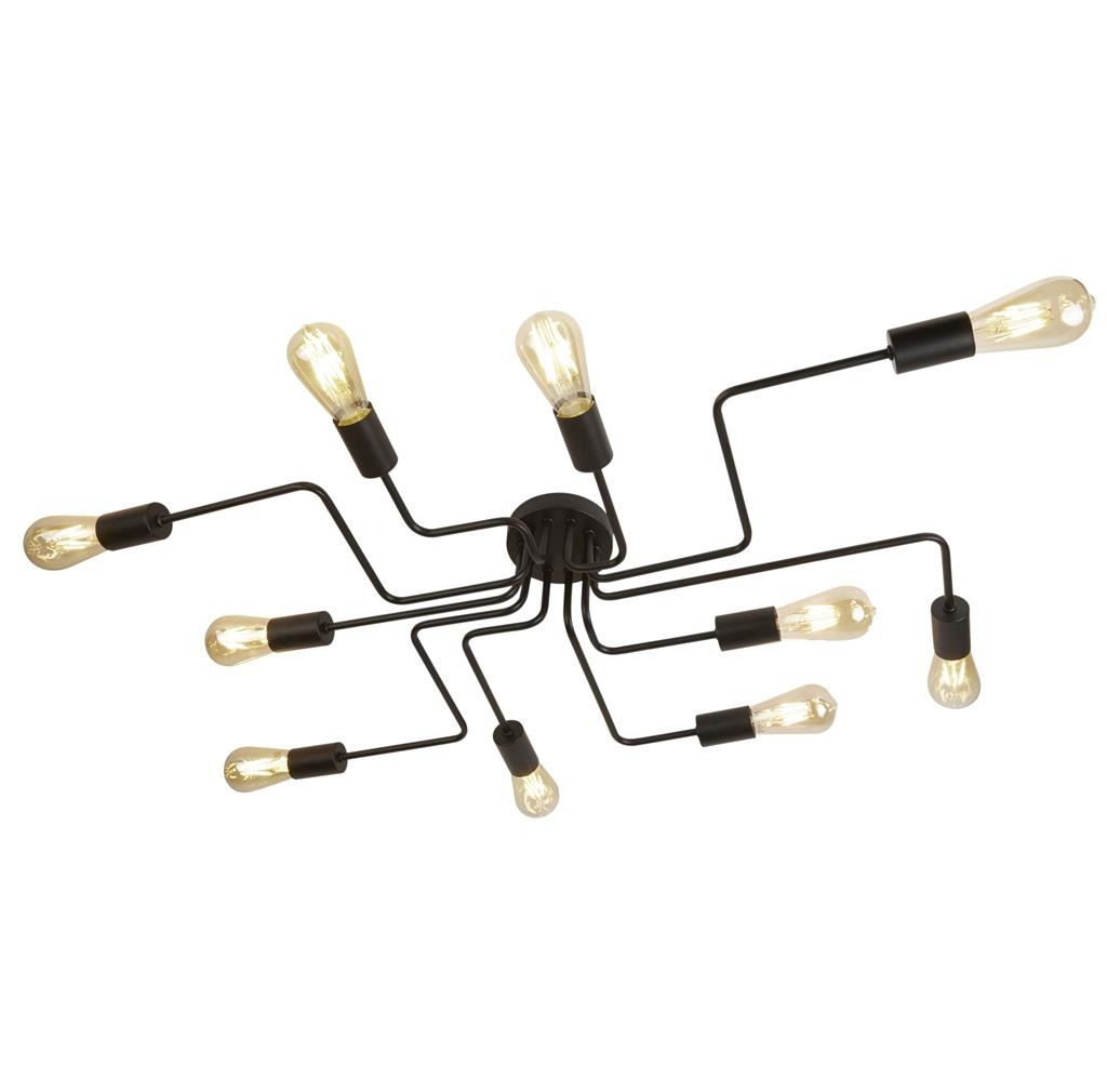 Een 10-lichts plafondlamp uit de Circuit collectie van het merk Searchlight met een industriële uitstraling. De matzwarte lamp is gemaakt van metaal. Goed toepasbaar in verschillende interieuren. Te plaatsen boven bijvoorbeeld de eettafel, in de hal of in de woonkamer. De lamp wordt geleverd exclusief lichtbronnen met E27 fitting geschikt voor 10x max. 60W.