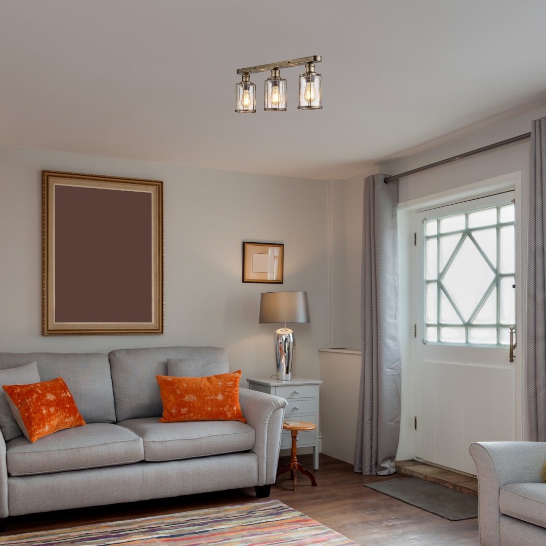 Een opvallende plafondlamp uit de Pipes collectie van het merk Searchlight. De lamp zou goed toepasbaar zijn in verschillende interieurstijlen. Denk aan industrieel of zelfs klassiek of vintage. De lamp heeft een messing kleur. De kapjes zijn gemaakt van ''seeded glass'' dit geeft het een golvend en wazig uiterlijk, met kleine luchtbelletjes. De lamp wordt geleverd exclusief lichtbronnen met E27 fitting geschikt voor max. 3x 60 watt. De lamp kan mooi geplaatst worden in bijvoorbeeld een hal, woonkamer of boven de eettafel.