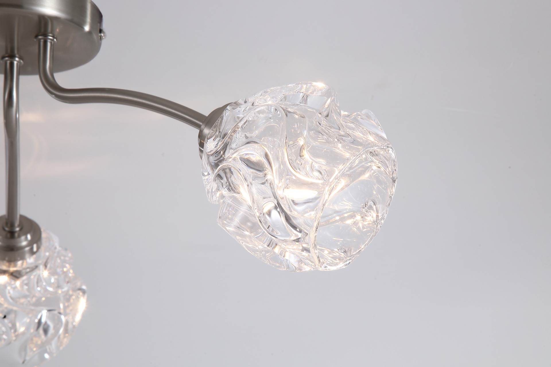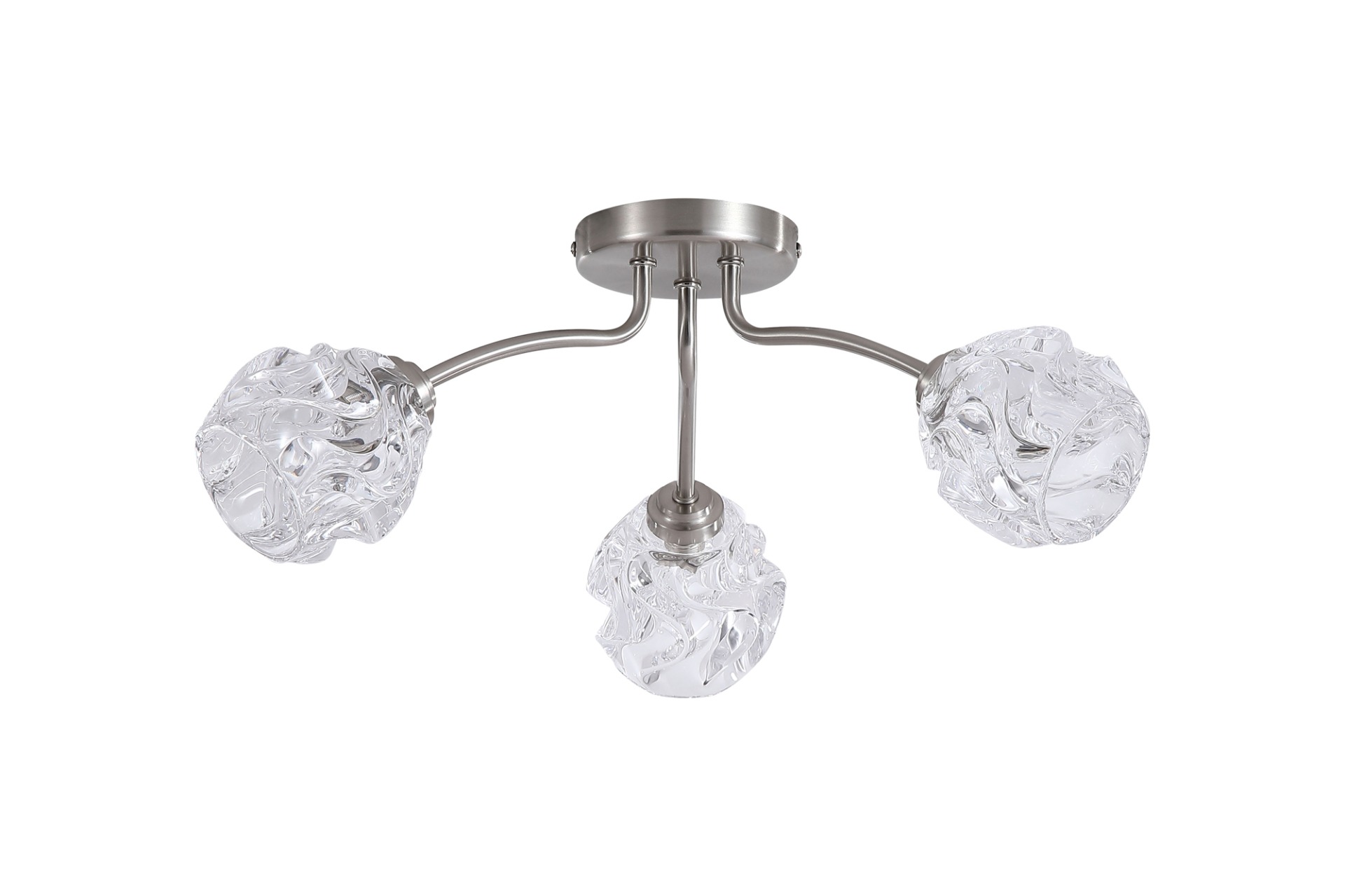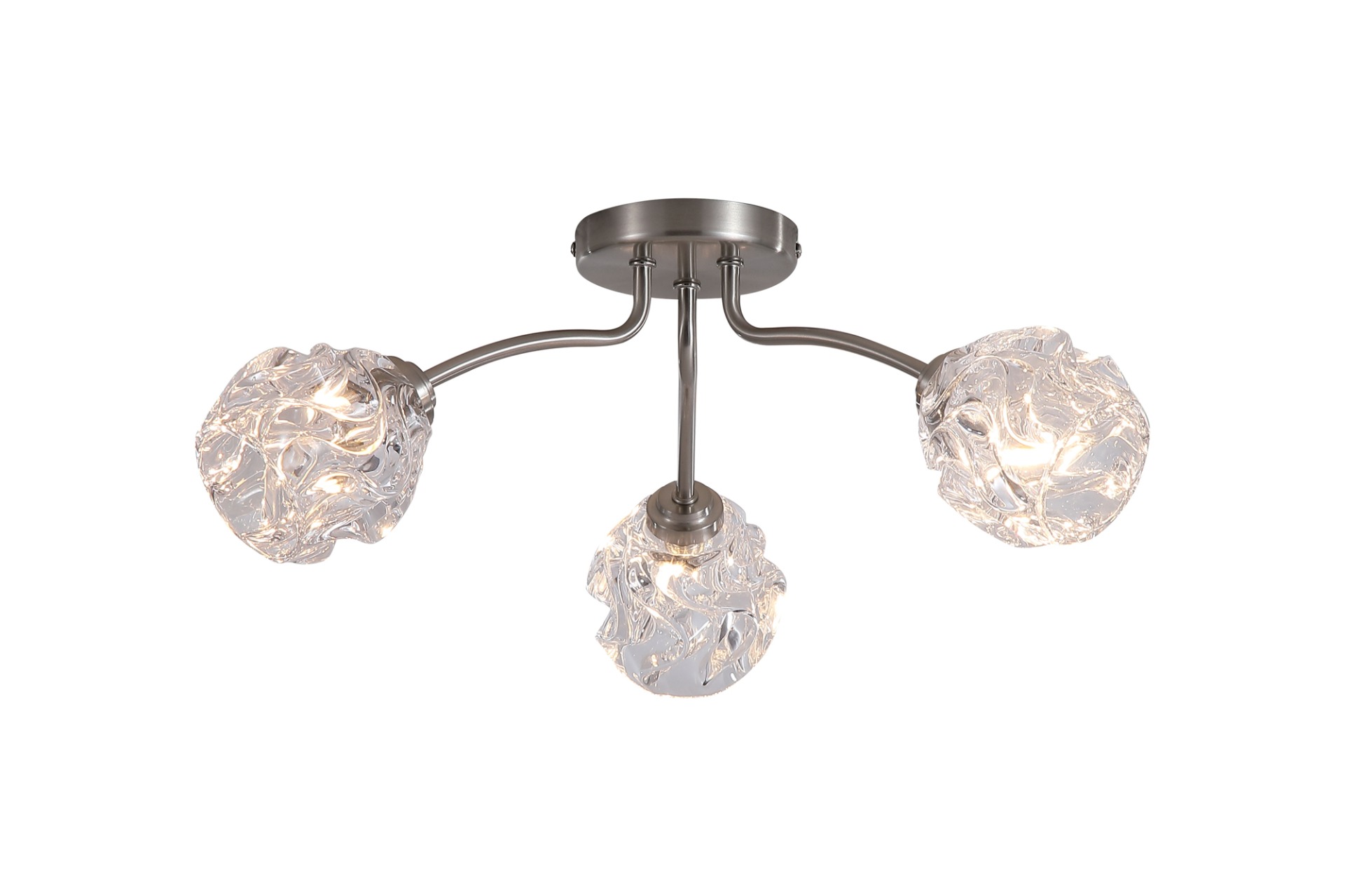 Een plafondlamp uit de Astral collectie van het merk Searchlight. Creëer een gezellige sfeer in huis met de prachtige Astral plafondlamp, een opvallende combinatie van textuur en elegantie. De lamp heeft drie glazen kappen (met ''gekreukte'' look) en is omlijst met een nikkel kleur voor een stijlvolle hoogwaardige uitstraling. Het getextureerde glas verspreidt het licht waardoor zachte sfeervolle verlichting ontstaat. De lamp wordt geleverd exclusief lichtbronnen en is geschikt voor kleine G9 fitting en max. 3x 33 watt.