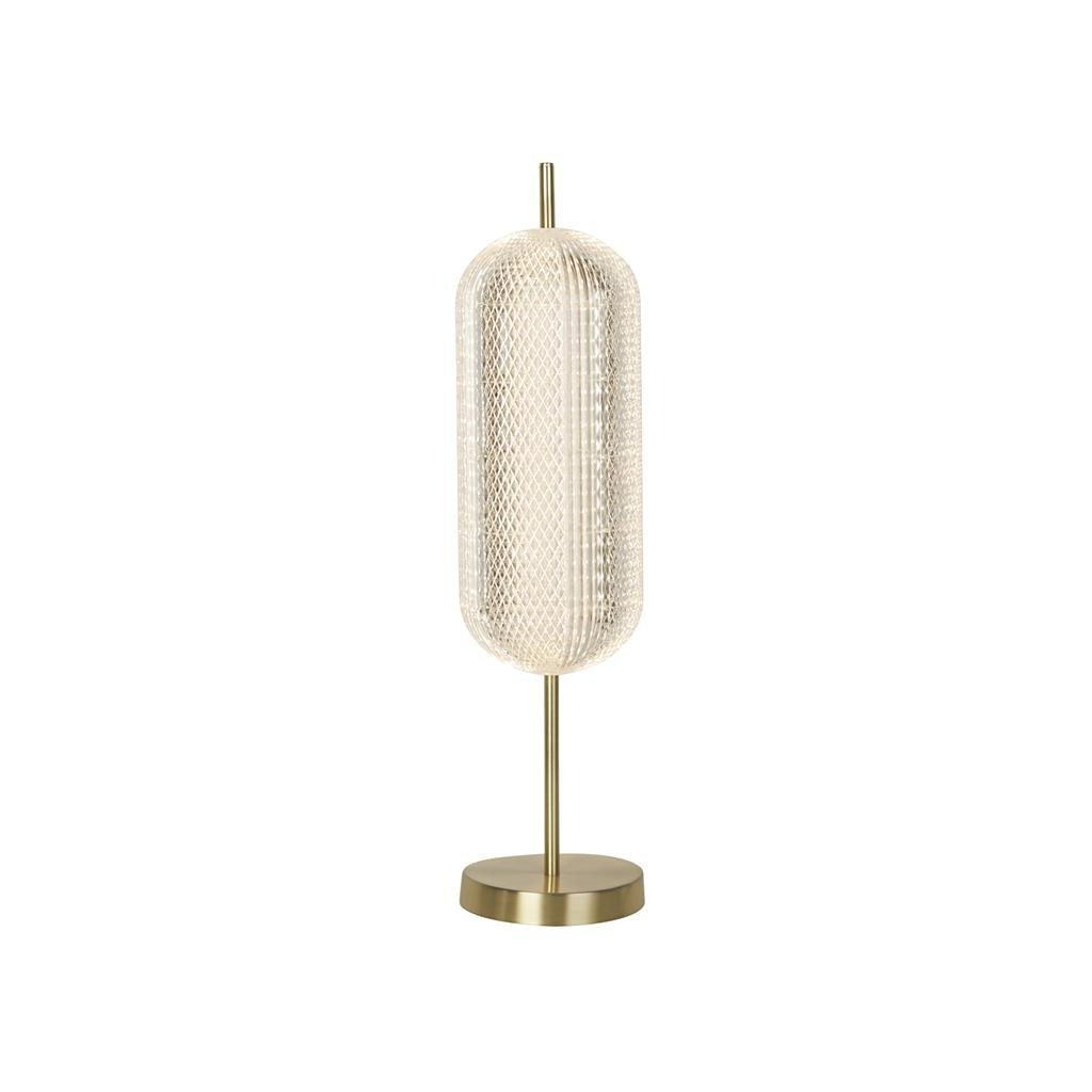 Een lamp uit de Capsule collectie van het merk Searchlight. Maak je ruimte mooier met deze mooie LED tafellamp van satijnmessing en acrylglas. De strakke voet in satijnmessing geeft de lamp een luxe uitstraling en past perfect bij de glanzende acrylglazen kap. Een stijlvolle lamp die goed past op een tafel, kastje of nachtkastje. De lamp wordt geleverd inclusief LED lichtbron van 17 watt.