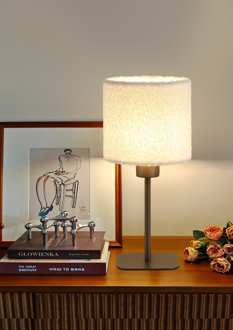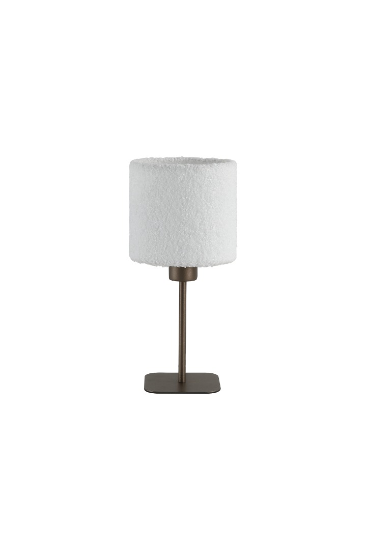 De Chelsea tafellamp van het merk Searchlight. De tafellamp geeft een ruimte zowel uitstraling als warmte. De lamp heeft een hoogte van 35 cm en een zachte witte lampenkap in teddy-stijl. De voet van de lamp heeft de trendy Searchlight kleur: Latte. Dit is een metallic bruinachtige koffie kleur. De Chelsea verlicht woonkamers tijdens gezellige gesprekken, maakt leeshoekjes knus en sfeervol, of voegt een rustig stijlvol accent toe aan een slaapkamer of hal. Wordt geleverd exclusief lichtbron. De lamp is geschikt voor E27 fitting en max. 60 watt.