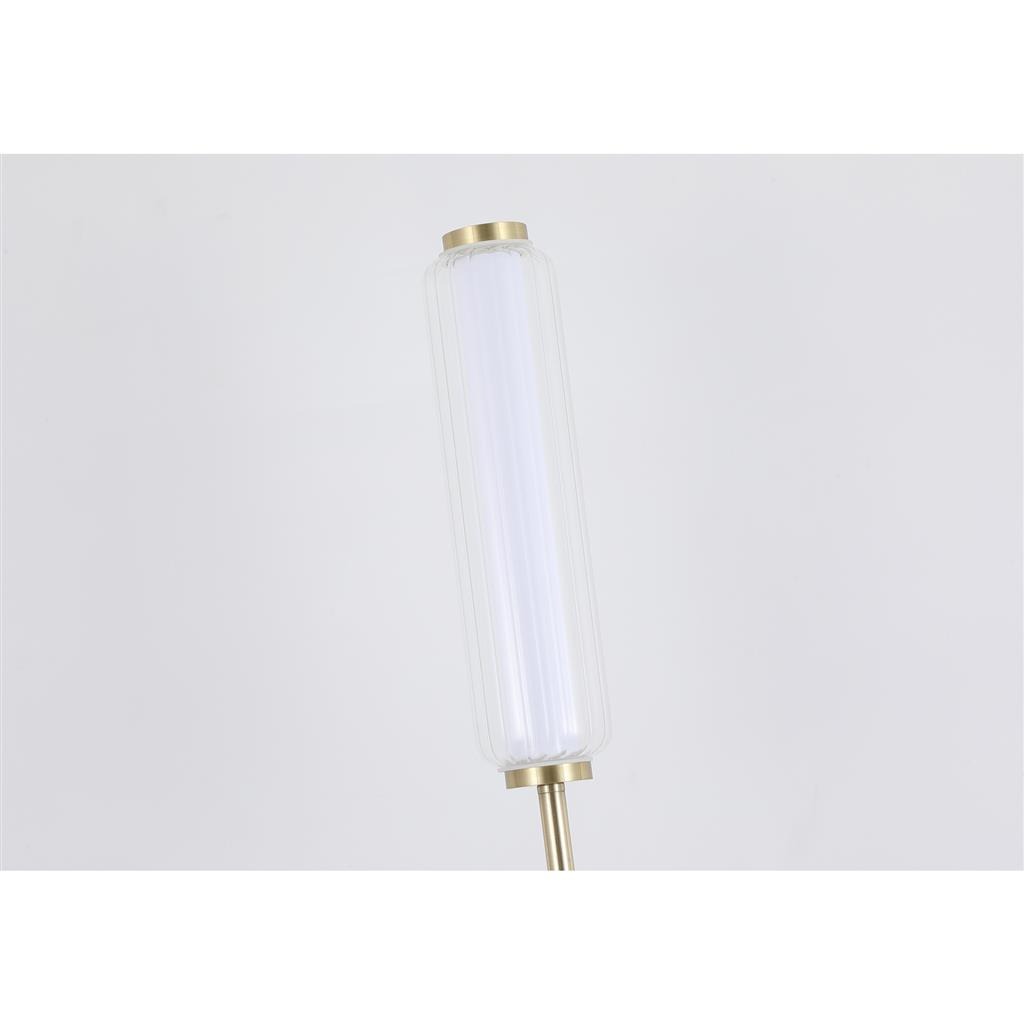 Een stijlvolle vloerlamp uit de Mod collectie van het merk Searchlight. De lamp combineert de warme uitstraling van messing met de strakke lijnen van een modern ontwerp. De geribbelde glazen kap zorgt voor een bijzonder textuurelement. De binnenste glazen kap is van opaal acryl terwijl de buitenkant gemaakt is van doorzichtig glas. Wanneer de lamp aan is zorgt het ribbelglas voor een mooi lichtspel. Dimbaar in 3 stappen middels de vloerdimmer. De lamp wordt geleverd inclusief LED lichtbron van 10 watt.