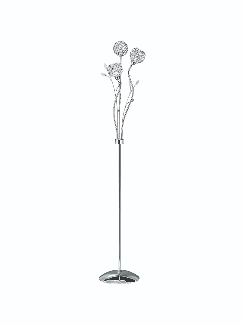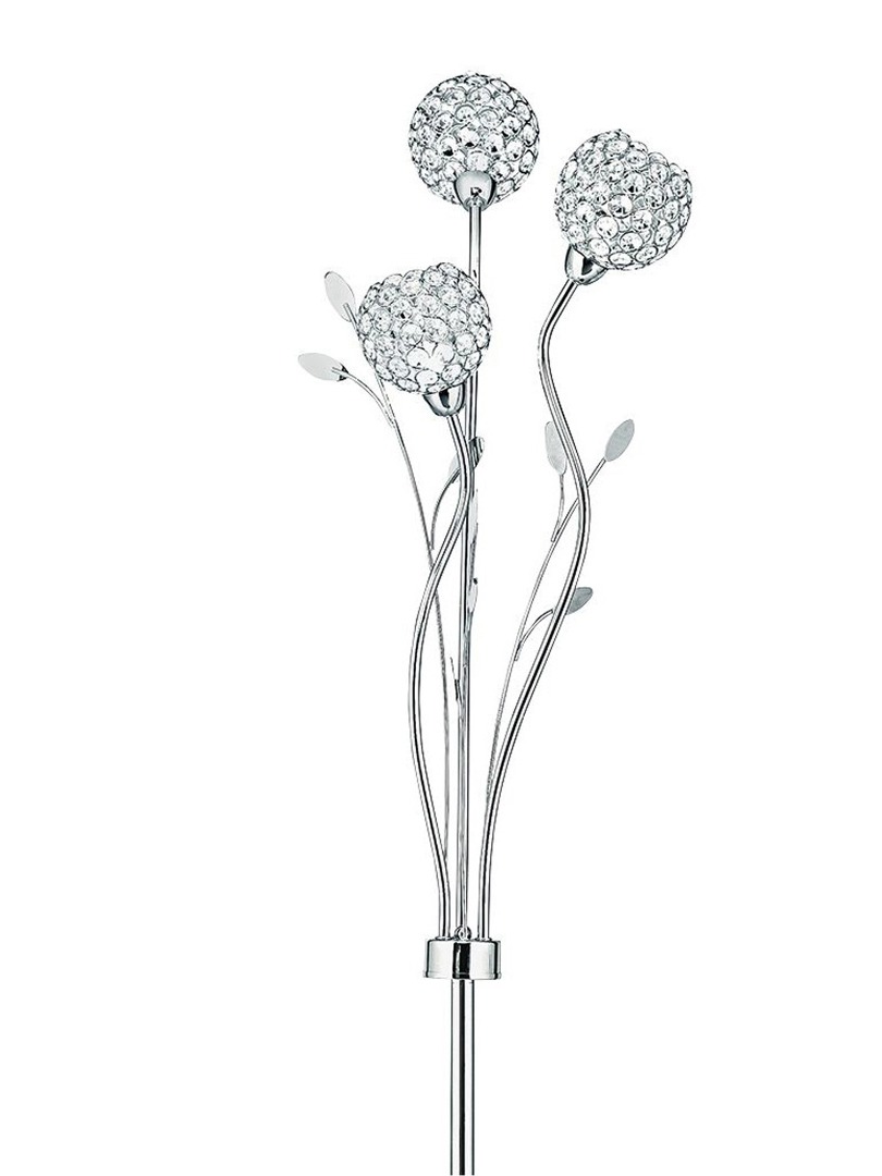 Een vloerlamp uit de Bellis II collectie van het merk Searchlight. Deze vloerlamp met 3 lichtpunten in een chromen kleur heeft bloemvormige glazen elementen kappen en prachtige bladdecoratie. De lamp vormt een indrukwekkend middelpunt voor elke ruimte. Het sierlijke armatuur is verfijnd afgewerkt en verspreidt het licht op een prachtige manier door de ruimte. Wordt geleverd exclusief 3 lichtbronnen. De Bellis II is geschikt voor G9 fitting en max. 3x 33 watt.