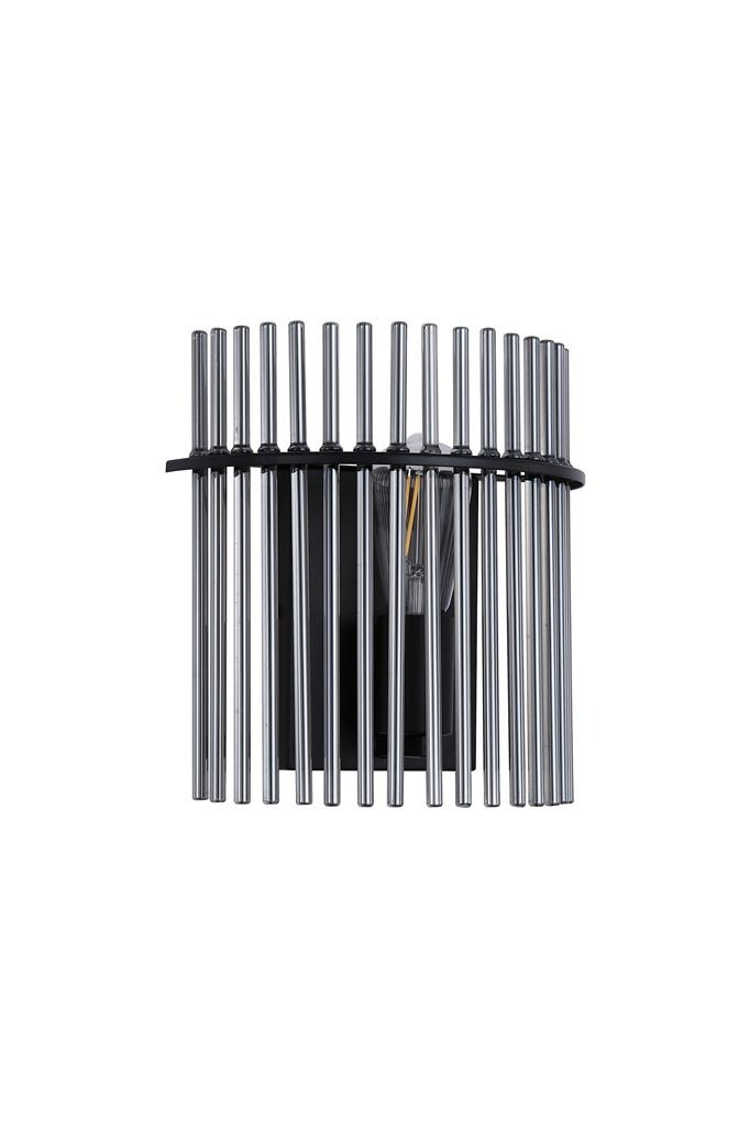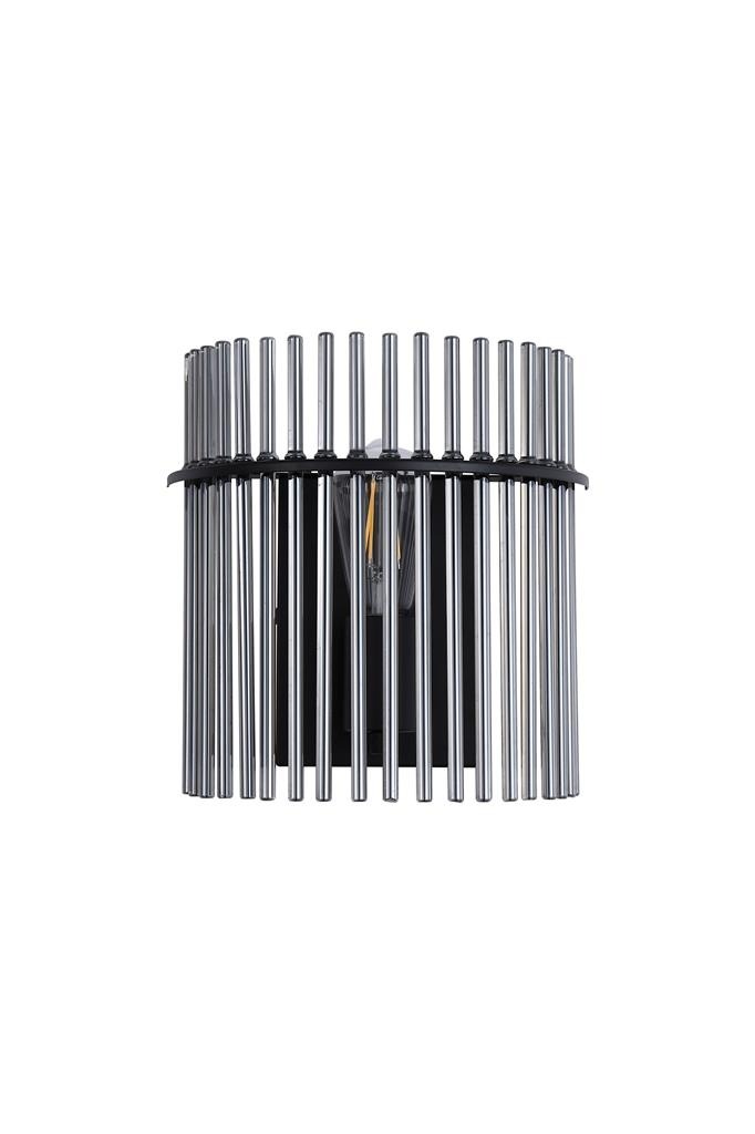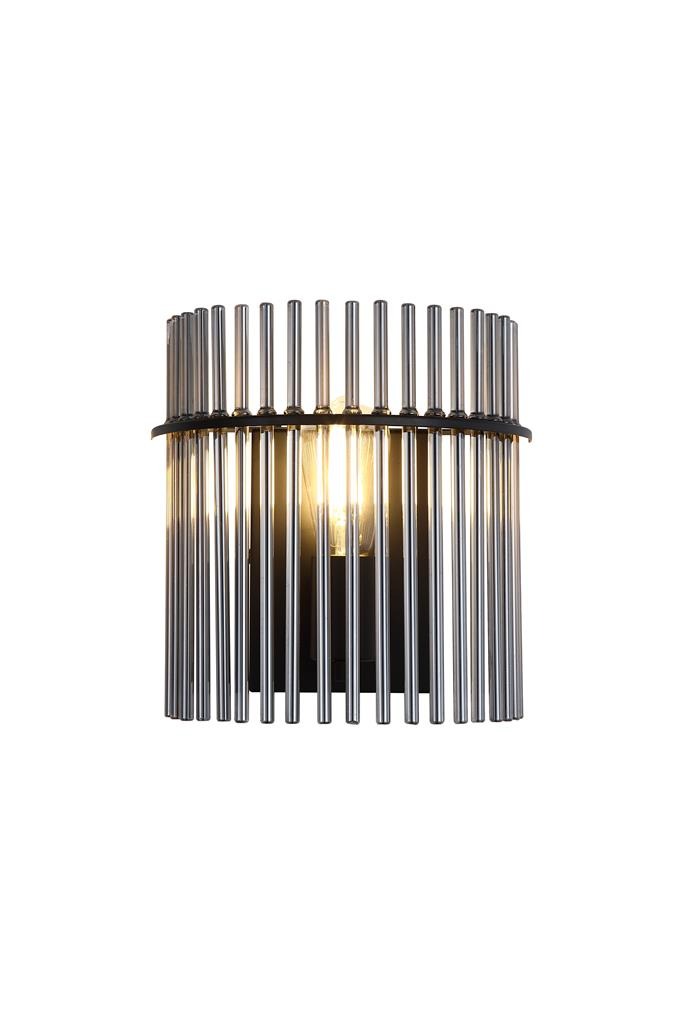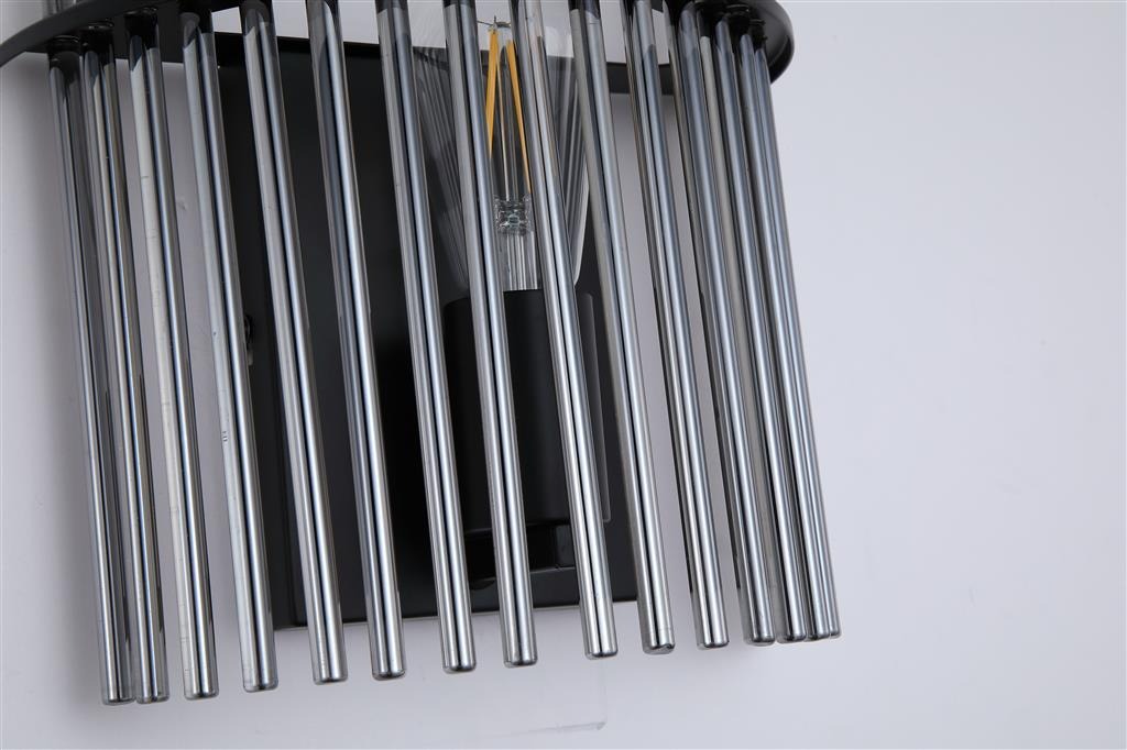 Een lamp uit de Swizzle collectie van het merk Searchlight. Breng stijl en sfeer in je huis met de moderne lamp die kunst en licht op een mooie manier samenbrengt. De lamp bestaat uit een bijzondere opstelling van zwarte gerookte glazen staven die er mooi uitzien of de lamp nu aan of uit is. Als je de lamp aanzet verschijnt er een zachte lichtkring rondom het glas. Het licht en de glazen staven zorgen samen voor een interessant schaduwspel dat extra sfeer geeft. De wandlamp is ideaal voor een moderne hal, strakke woon-/slaapkamer of andere plekken waar je een lamp wilt die niet alleen licht geeft maar ook mooi staat als decoratie. De lamp komt exclusief lichtbron en is geschikt voor E27 fitting en maximaal 60 watt.