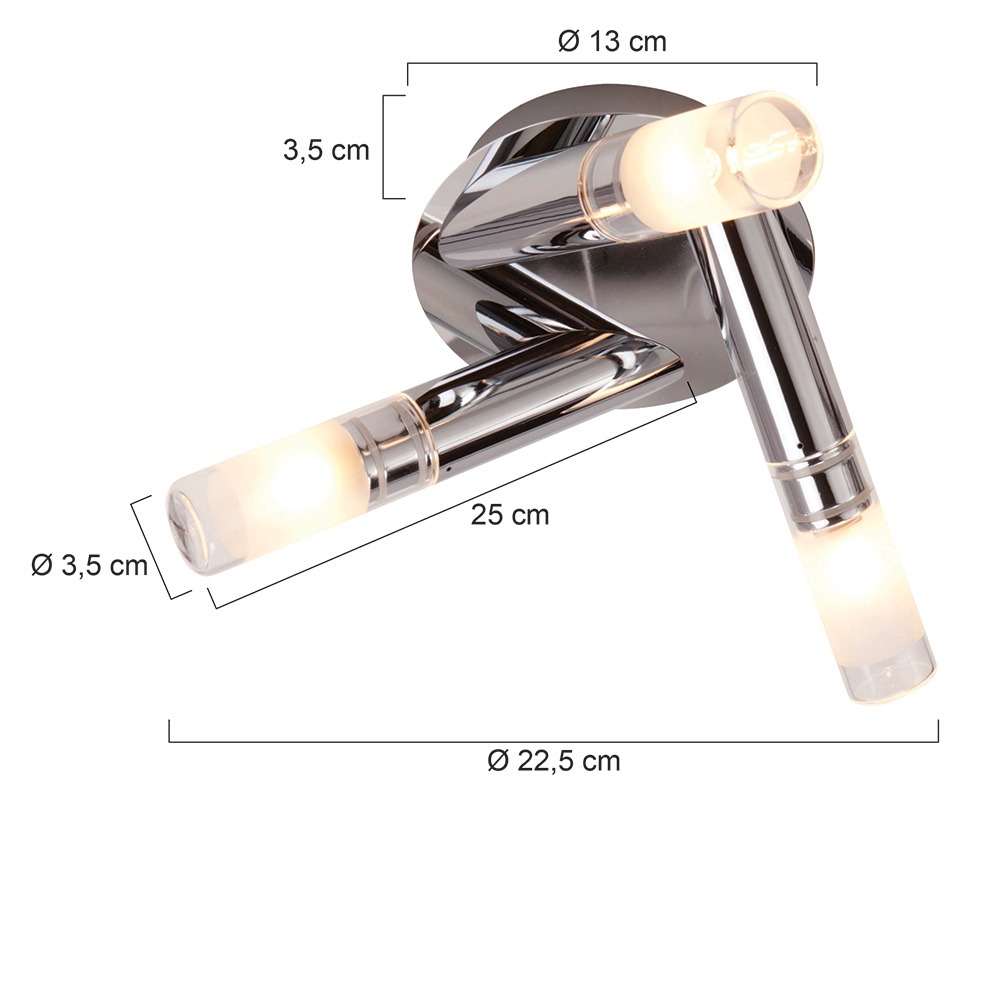 Moderne plafondlamp uit de Ceiling and Wall LED serie. De lamp is gemaakt van metaal en glas. De lamp komt inclusief 3 LED G9 lichtbronnen van 5W elk. De chromen kleur zou mooi passen in bijvoorbeeld een modern interieur. De lamp is dankzij de IP44 waarde ook zeer geschikt voor badkamer zone 2 en 3.