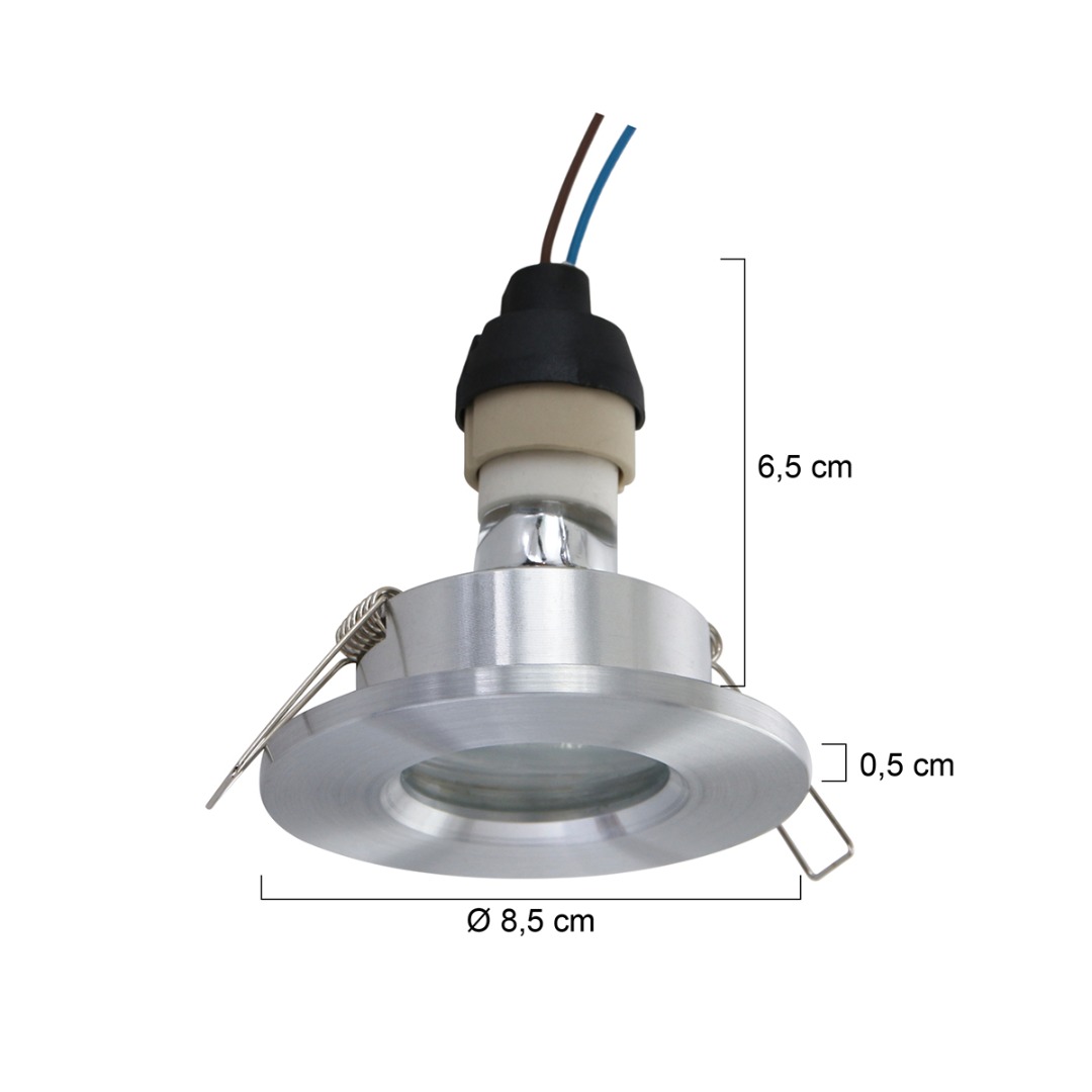 Deze moderne inbouwspot komt uit de Pélite collectie en heeft een stalen kleur. De spot is ook dimbaar als u deze aansluit op een (niet meegeleverde) externe dimmer en geschikte lichtbron. Tevens is de lamp geschikt voor in de badkamer zone 2 (zie foto). Dankzij het klemveersysteem is de spot eenvoudig in te bouwen.