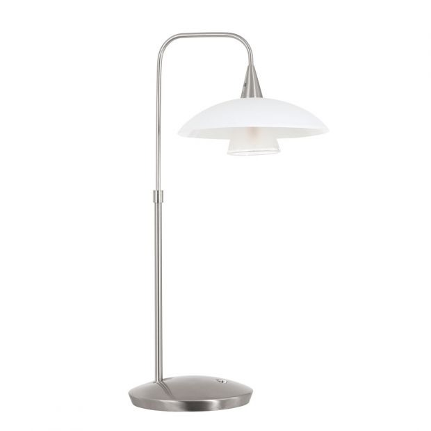 Deze moderne tafellamp met stalen kleur komt uit de Tallerken serie. De sierlijk geborsteld stalen buis eindigt op een glazen schoteltje, hieronder bevind zich een wit kokertje die er voor zorgt dat men niet direct tegen het LED lampje kijkt. Doordat deze lamp voorzien is van een puls dimmer, verwerkt in de voet, kan men iedere gewenste sfeer creëren