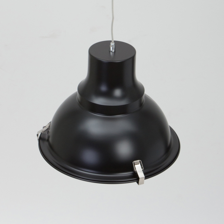 Zwarte 1-lichts hanglamp uit de serie Parade. E27 fitting 1*75 watt Geschikt voor LED, spaar en gloeilampen. Deze hanglamp is in hoogte instelbaar tijdens montage aan het plafond.