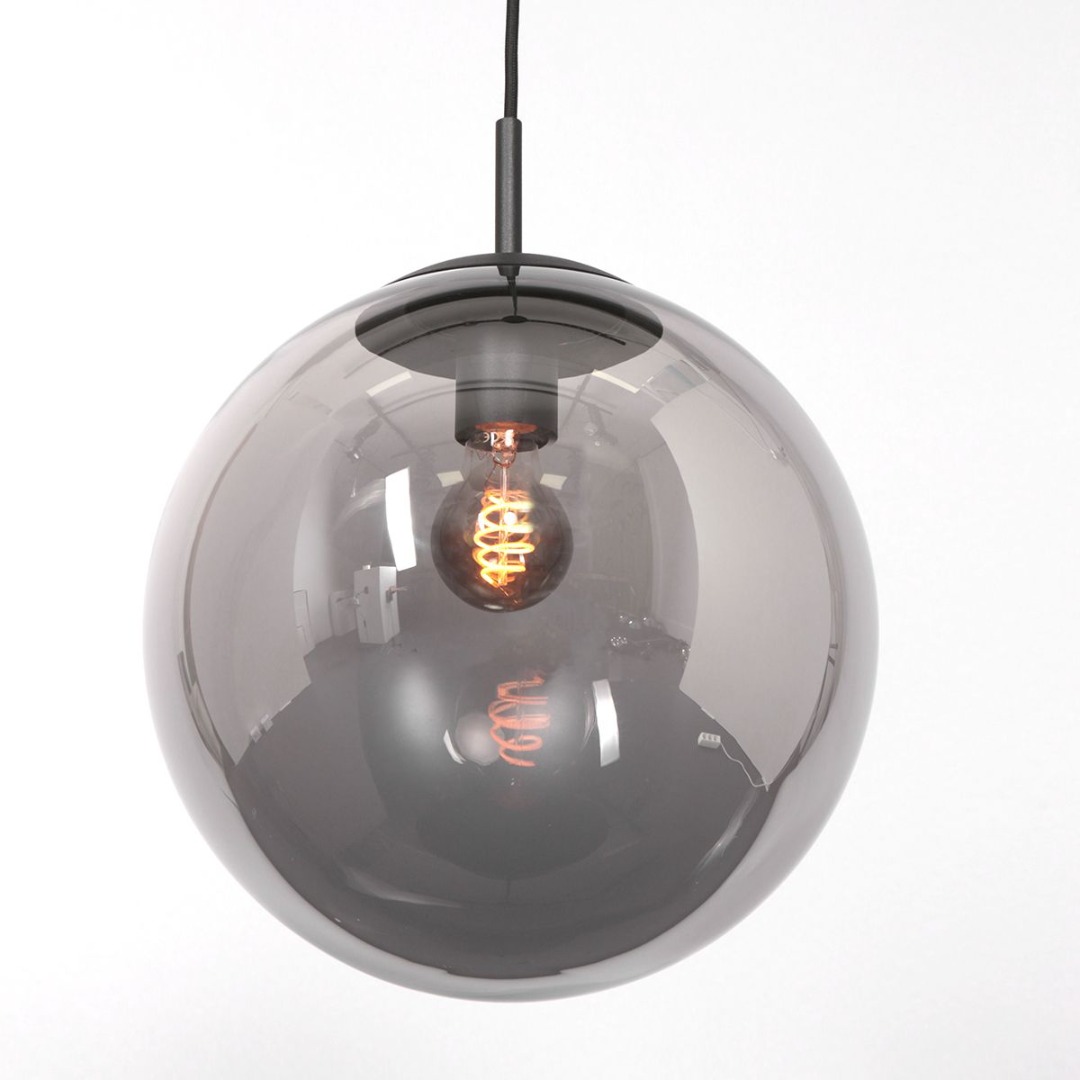 Deze 6-lichts hanglamp komt uit de Bollique serie. De lamp heeft 6 grijze/spiegel ronde bollen. De lamp is dimbaar middels, niet mee geleverde externe dimmer en geschikte lichtbronnen. De lamp komt mooi tot zijn recht boven de eettafel of het keukeneiland. De Bollique is met zijn unieke uiterlijk een echte blikvanger in uw huis. Leuk te combineren met de andere lampen uit de Bollique serie. De lamp is in hoogte te verstellen bij montage. De bollen hebben 3 verschillende afmetingen.