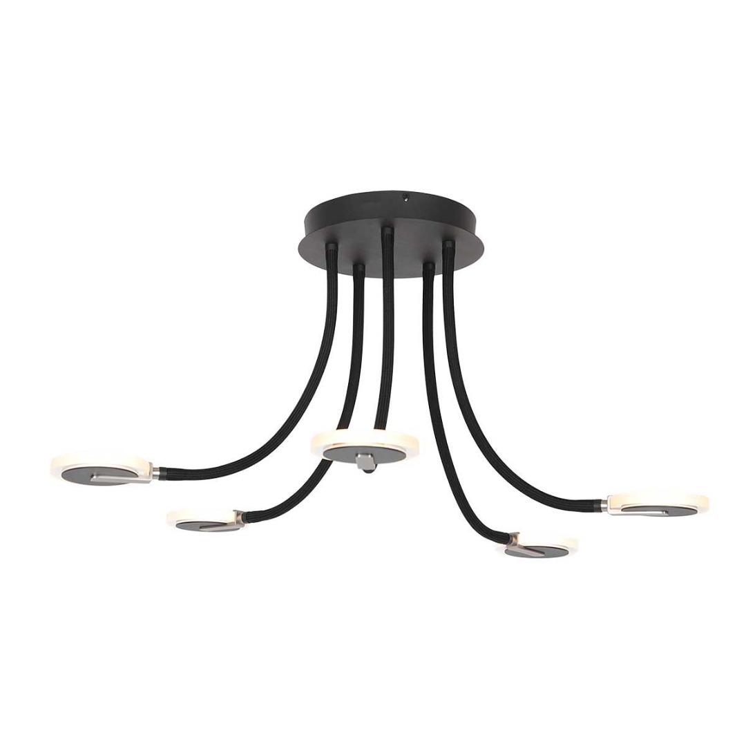 Een moderne plafondlamp van Steinhauer uit de Turound LED familie met helderglas reflectoren en flexibele armen. De lamp is gemaakt van glas en metaal en heeft een strakke zwarte kleur. Deze lamp kan goed worden geplaatst in bijvoorbeeld de woon-/ slaapkamer of hal. De lamp komt inclusief ingebouwde LED lichtbron van 10 watt met 5000 lumen. De lamp is dimbaar middels een externe (exclusieve) dimmer. De lamp is leuk te combineren met de andere modellen uit de gelijknamige serie, zoals de tafel- of vloerlamp.