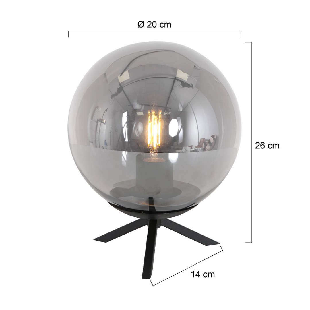 Deze tafellamp komt uit de Bollique serie. De lamp heeft een smoke/spiegel ronde bol. De lamp is dimbaar middels, niet mee geleverde externe dimmer en geschikte lichtbron. De lamp komt mooi tot zijn recht in de slaapkamer, hal of woonkamer. De Bollique is met zijn unieke uiterlijk een echte blikvanger in uw huis. Leuk te combineren met de hang- of vloerlamp uit de gelijknamige serie.