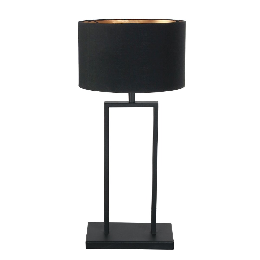 Een moderne tafellamp van Steinhauer uit de Stang-familie. De lamp is leuk te combineren met de andere lampen uit de gelijknamige serie. De lamp is gemaakt van zwartkleurig metaal en heeft een zwarte linnen kap met gouden binnenkant. Deze lamp kan goed worden geplaatst in de woonkamer of in de hal op een sidetable. Dit armatuur van Steinhauer wordt exclusief lichtbron geleverd. De lamp is dimbaar met een externe (exclusieve) dimmer en een geschikte lichtbron.