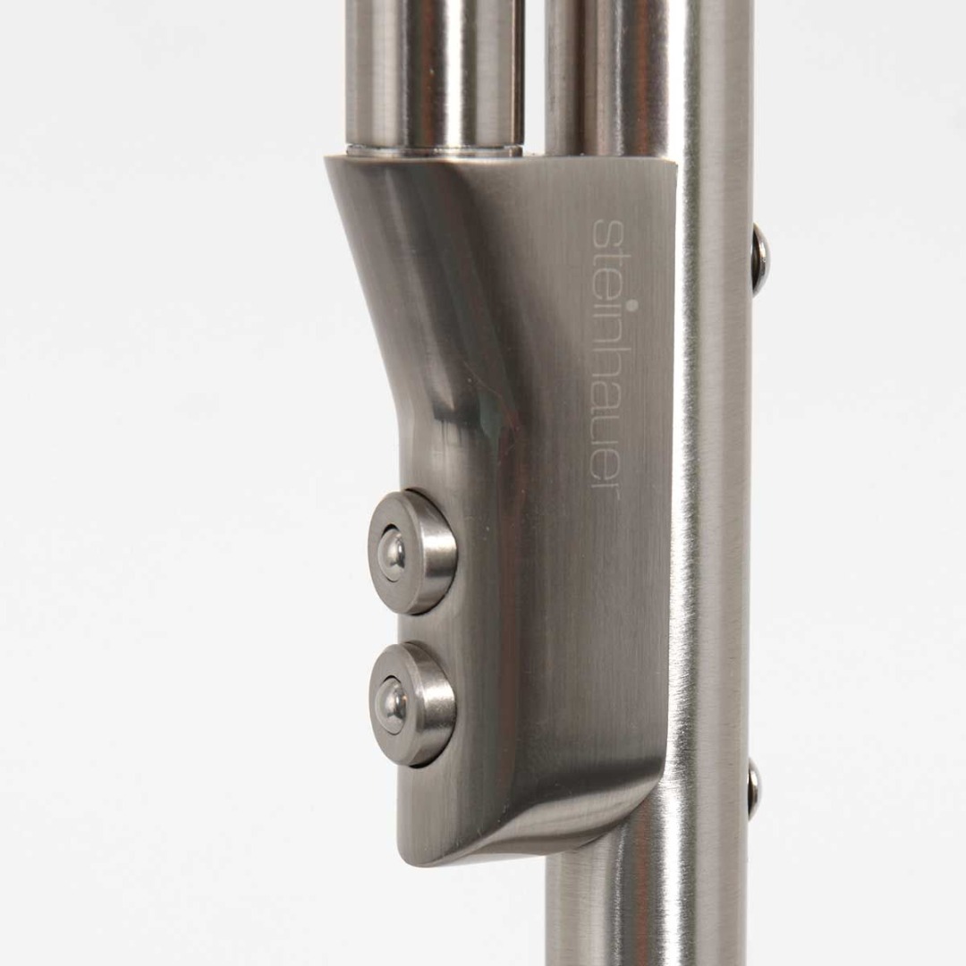Deze moderne vloerlamp komt uit de Soleil collectie van Steinhauer. De lamp is voorzien van een leeslamp en een uplighter met roterend midden stuk. Beide lampen zijn voorzien van LED module van 10 Watt met 1000 Lumen en de uplighter heeft 2 LED modules van totaal 40 Watt met 4000 Lumen. Beide lampen zijn afzonderlijk van elkaar te dimmen en de lichtkleur is instelbaar van 2200 Kelvin (warm geel licht) tot 3000 Kelvin (fel wit licht). Te bedienen met 2 pushdimmers. Kort indrukken staat voor aan/uit, lang indrukken staat voor het dimmen van de lamp en 2x indrukken en vasthouden staat voor het instellen van de lichtkleur. De hoogte van de lamp is 183 centimeter.