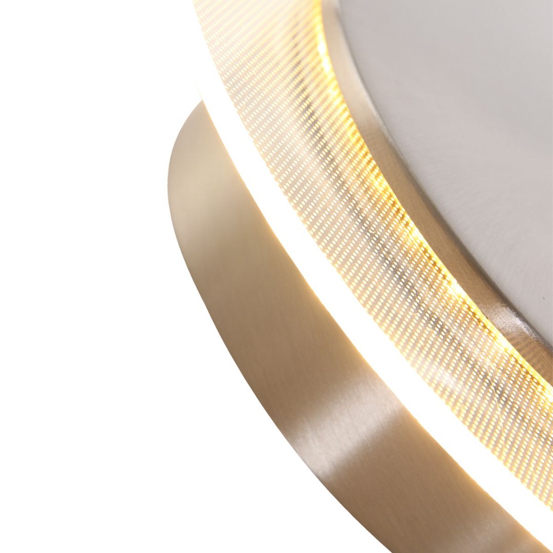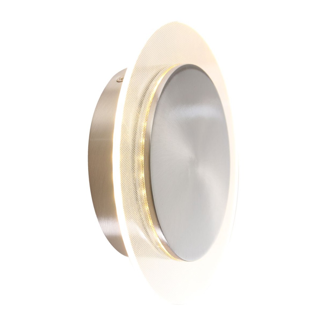 Een moderne plafondlamp met een stalen kleur. Wat deze lamp uniek maakt is dat hij zowel als plafondlamp als wandlamp kan worden gebruikt. De plaat is ook nog eens draaibaar. Deze lamp is mogelijk dimbaar door een niet meegeleverde externe dimmer. De lamp beschikt over een energiezuinige LED module met een wattage van 8 Watt.