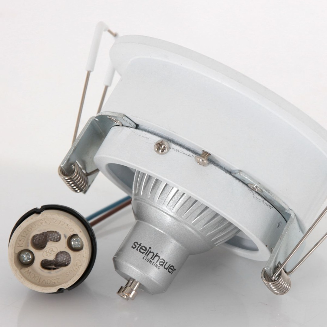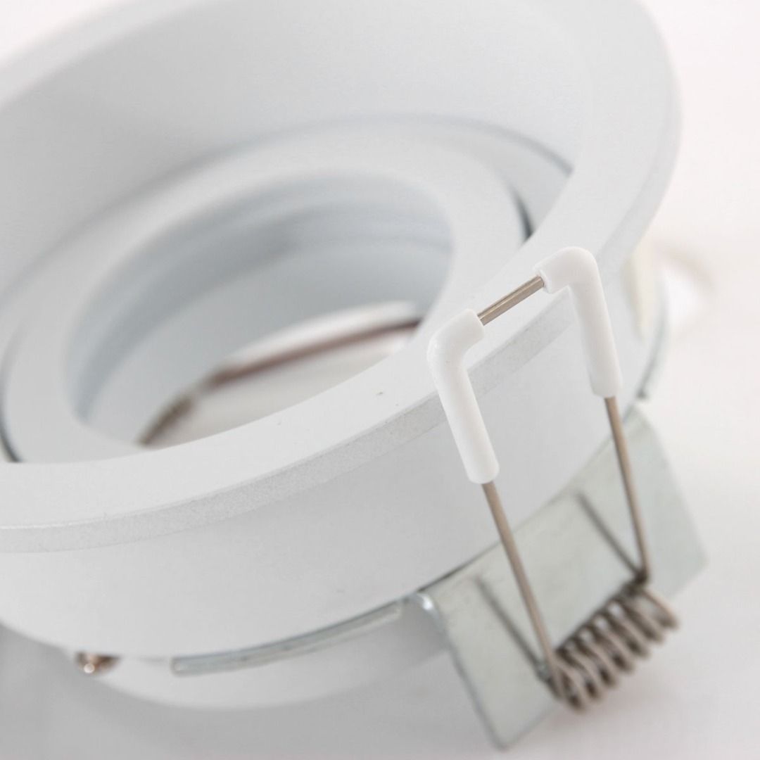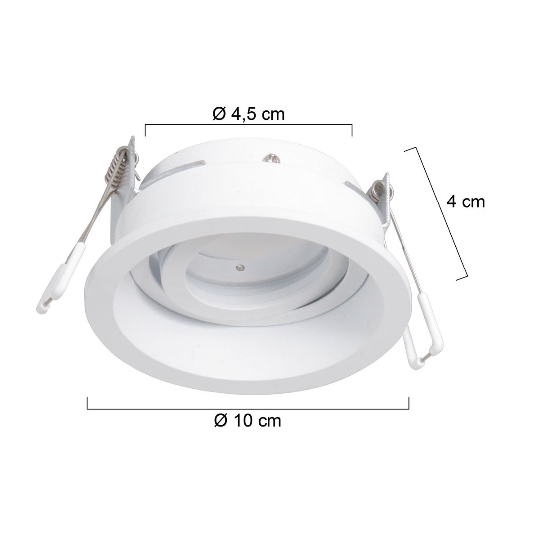Een moderne inbouwspot uit de Pélite serie. Uitgevoerd in een witte kleur en rond (10cm) van vorm. De spot is kantelbaar en geschikt voor GU10 fitting lampen zoals LED en halogeen. Geschikt voor maximaal een wattage van 25W. Door het klemveer systeem gemakkelijk in te bouwen.