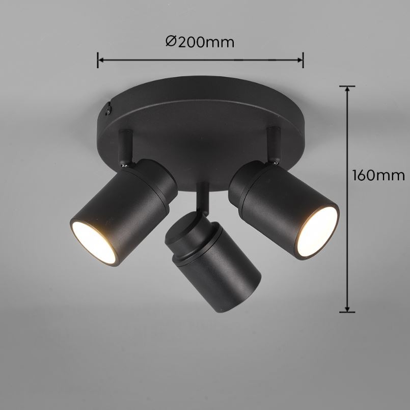 Een hoogwaardige opbouwspot van het Duitse verlichtingsmerk Trio. Deze algemene verlichting zorgt ervoor dat u goed zicht hebt in de badkamer. De lichtbundels van deze beweegbare badkamerspots kunnen eenvoudig in de juiste richting worden gericht. Deze lamp is gemaakt van metaal en uitgevoerd in de kleur matzwart. De opbouwspot heeft drie GU10-lichtbronnen nodig welke niet worden meegeleverd maar die eenvoudig afzonderlijk bijbesteld kunnen worden. Wij adviseren LED spots met een maximaal vermogen van 5W. In dezelfde serie zijn ook opbouwspots met 1 of 4 lichtpunten verkrijgbaar.