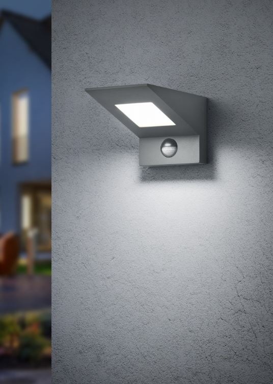 Een mooie moderne wandlamp uit de buitenverlichting collectie van Trio. Deze buitenlamp beschikt over een geïntegreerde LED lamp met een wattage van 8W. Ook heeft deze lamp een handige bewegingssensor. De lamp is gemaakt van gegoten aluminium en heeft de kleur antraciet. De kap zelf is gemaakt van kunststof in een witte kleur. Plaats deze lamp bijvoorbeeld boven/of naast een deur.