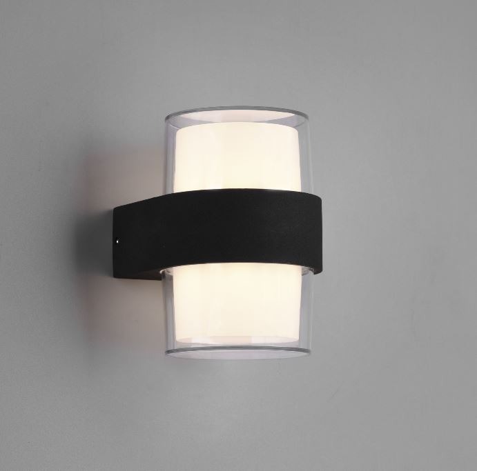 Een opvallende wandlamp met een moderne uitstraling uit de buitenverlichting collectie van Trio. Deze buitenlamp heeft een ingebouwde LED lamp met een wattage van 2x 4,6W. De lamp is gemaakt van gegoten aluminium en kunststof in de kleur antraciet en wit. Plaats deze lamp bijvoorbeeld boven/of naast een deur. De lamp schijnt licht naar zowel boven als onder.