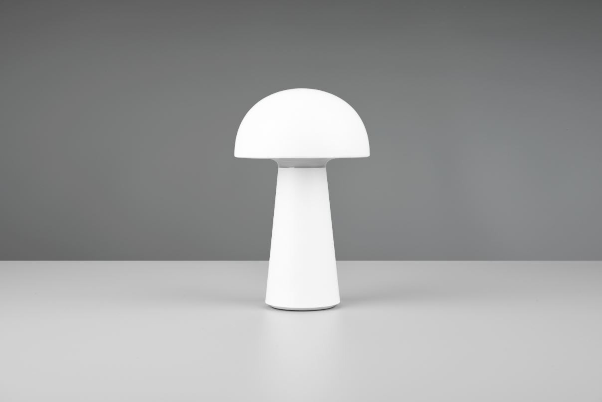 Een tafellamp voor buiten van het Duitse verlichtingsmerk Trio. Een moderne interpretatie van de 'mushroom' lamp uit de zeventiger jaren. Dit lampje is gemaakt van kunststof en uitgevoerd in de kleur wit. Liever een andere kleur? De Lennon is ook verkrijgbaar in het zwart. Met een IP-waarde van 44 is deze tafellamp spatwaterdicht. Deze armatuur werkt op een oplaadbare accu welke via USB-poort en meegeleverde oplaadkabel opgeladen dient te worden. Na de lamp 3,5 uur te hebben opgeladen gaat hij 7 uur mee. Het is hierdoor mogelijk om het lampje overal te gebruiken in de tuin of op de camping. De lamp is al voorzien van een lichtbron, te weten een geïntegreerde SMD-LED lamp met een wattage van 2W. De lamp heeft een aanraakschakelaar voor 3 lichtsterkteniveaus.