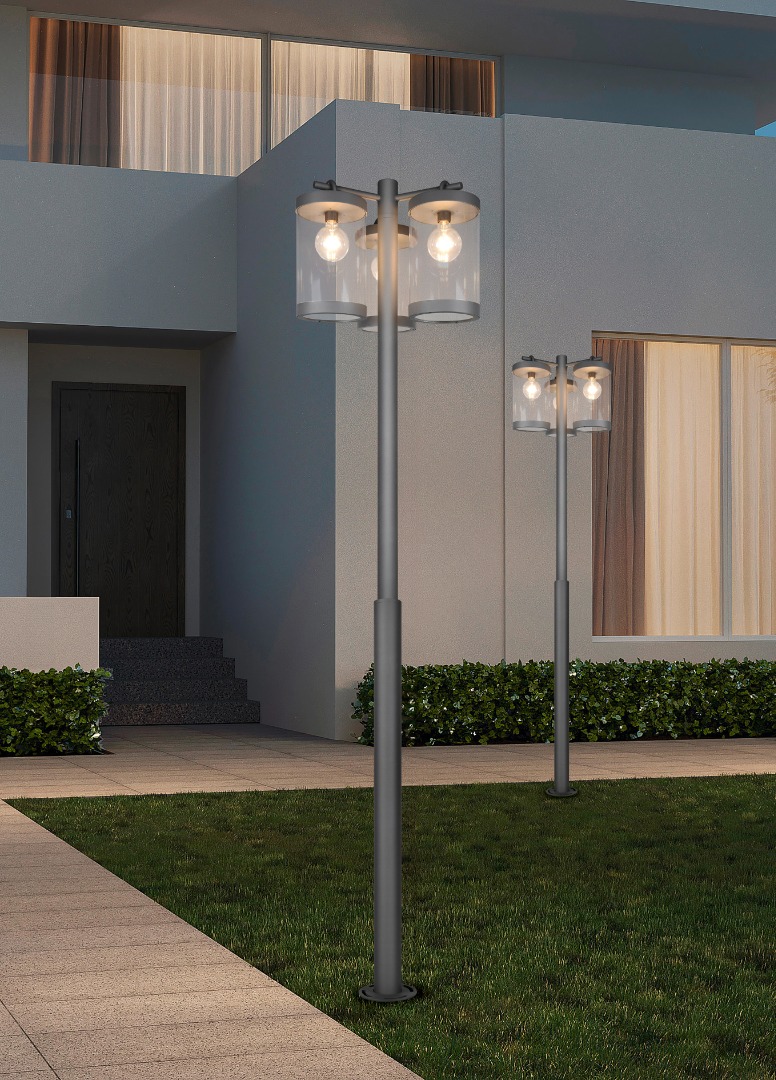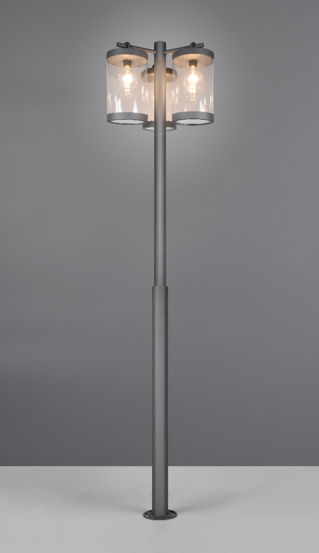Een klassieke lantaarnpaal met drie lichtpunten van het merk Trio. Deze lantaarnpaal met een hoogte van 240 cm is gemaakt van gegoten aluminium en uitgevoerd in de kleur antraciet. Deze lamp met minimalistische uitstraling kan goed langs het tuinpad worden geplaatst of elders in de tuin. Deze buitenlamp is met een IP-waarde van 44 spatwaterdicht. Achter het transparante heldere glas is plaats voor drie E27-fittingen, elk geschikt voor een maximaal wattage van 28W. Zo kunt u zelf bepalen hoeveel licht u wilt hebben. Daarnaast is deze lantaarnpaal voorzien van een ingebouwde lichtsensor, waardoor de lamp automatisch aan- en uitgaat afhankelijk van het dag- en nachtlicht.