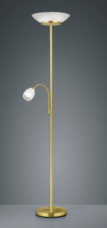 Dit is de nieuwe vloerlamp uit de RL collectie van het Duitse merk Trio. De Gerry heeft een hoogte van 180 cm en wordt geleverd inclusief aan/uit schakelaar. Deze armatuur heeft verschillende lichtbronnen die apart aan-en uitgeschakeld kunnen worden ook voorziet deze armatuur van een flexibele aanpasbare arm. De lamp is gemaakt van metaal in een mooie goude kleur. Door zijn moderne uiterlijk en goude kleur krijgt u een luxe en stijlvolle uitstraling in uw ruimte. Deze lamp biedt kwalitatieve en functionele verlichting.