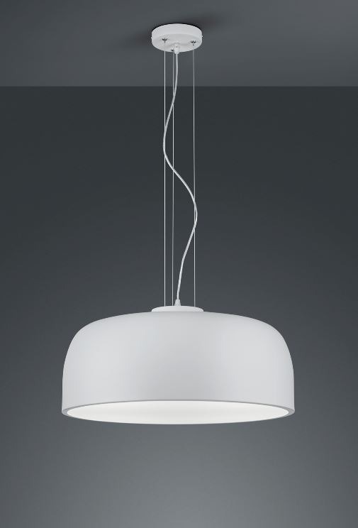Deze mooie hanglamp is gemaakt van metaal in de kleur wit mat. De lamp wordt exclusief lichtbronnen geleverd. Deze lamp met eenvoudige uitstraling van het merk Trio kan goed worden toegepast in de eetkamer boven de eettafel en past in verschillende interieurs.