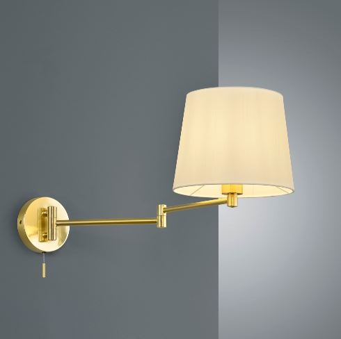 Een moderne wandlamp uit de serie Lyon van het merk Trio. Een klassieke slaapkamerlamp die met de gouden arm extra flair in uw ruimte brengt. De lamp is eenvoudig te bedienen met een trekschakelaar die onder het armatuur hangt. Door de verstelbare armen kan de lamp in verschillende posities gebracht worden. De levering is exclusief lichtbron (1x E27, Max 60W).