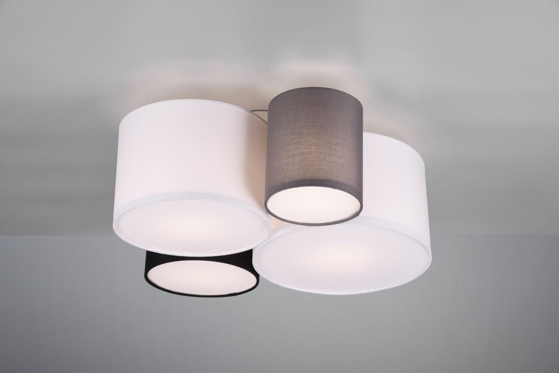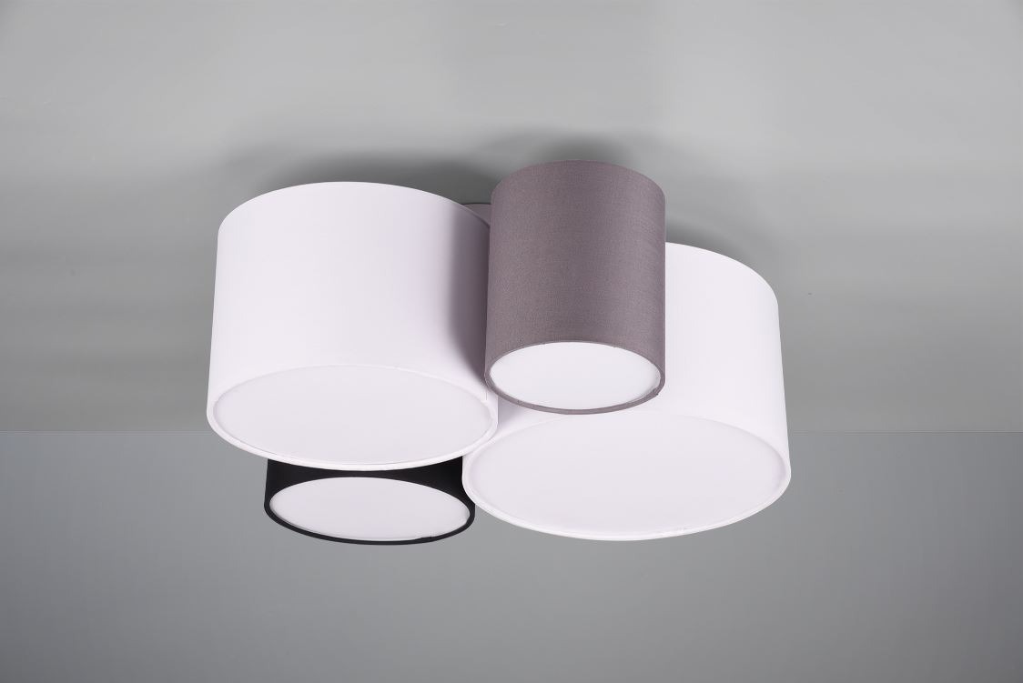 Deze moderne plafondlamp is gemaakt van metaal en uitgevoerd in de kleur nikkel mat. De hanglamp beschikt over vier kappen welke gemaakt zijn van textiel. De grootte van de kappen varieert (de kappen hebben een diameter van 15, 20, 25 en 30 cm). Deze plafonnière kan goed worden toegepast in verschillende binnenruimtes, zoals bijvoorbeeld in de slaapkamer, woonkamer of hal. Door zijn strakke vormgeving past deze lamp in veel interieurs. De lamp wordt exclusief lichtbronnen geleverd. U kunt hierdoor zelf bepalen hoeveel licht u wilt hebben. De lamp heeft vier E27-fittingen die geschikt zijn voor een max. wattage van 42W.