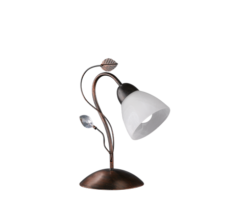 Een mooie tafellamp van het merk Trio. Deze elegante tafellamp is gemaakt van metaal en uitgevoerd in een antieke roestkleur. Deze lamp kan goed worden geplaatst op een bureau, kast of bijzettafel, in de woonkamer of hal bijvoorbeeld. De lamp heeft decoratieve bladeren van acryl en metaal en beschikt over een albastkleurige kap met een diameter van 12 cm, welke gemaakt is van glas. De kap biedt plaats aan één E14-fiiting die geschikt is voor een max. wattage van 40W. Deze lamp van Trio wordt exclusief lichtbron geleverd. U kunt hierdoor zelf bepalen hoeveel licht u wilt hebben. De tafellamp wordt inclusief snoerschakelaar geleverd.