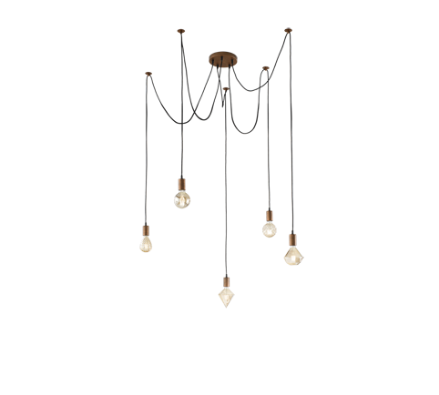 Een mooie hanglamp van het merk Trio. Dankzij zijn strakke vormgeving zal deze lamp zich thuis voelen in moderne interieurs. De hanglamp is gemaakt van metaal en uitgevoerd in antiek koper in combinatie met zwart koord. Deze hanglamp kan goed worden toegepast in de woonkamer of boven de eettafel in de eetkamer. Er is plaats voor vijf E27-fittingen die geschikt zijn voor een max. wattage van 60W. Deze lamp van Trio wordt exclusief lichtbronnen geleverd. U kunt hierdoor zelf bepalen hoeveel licht u wilt hebben. Deze armatuur kan in de hoogte versteld worden.