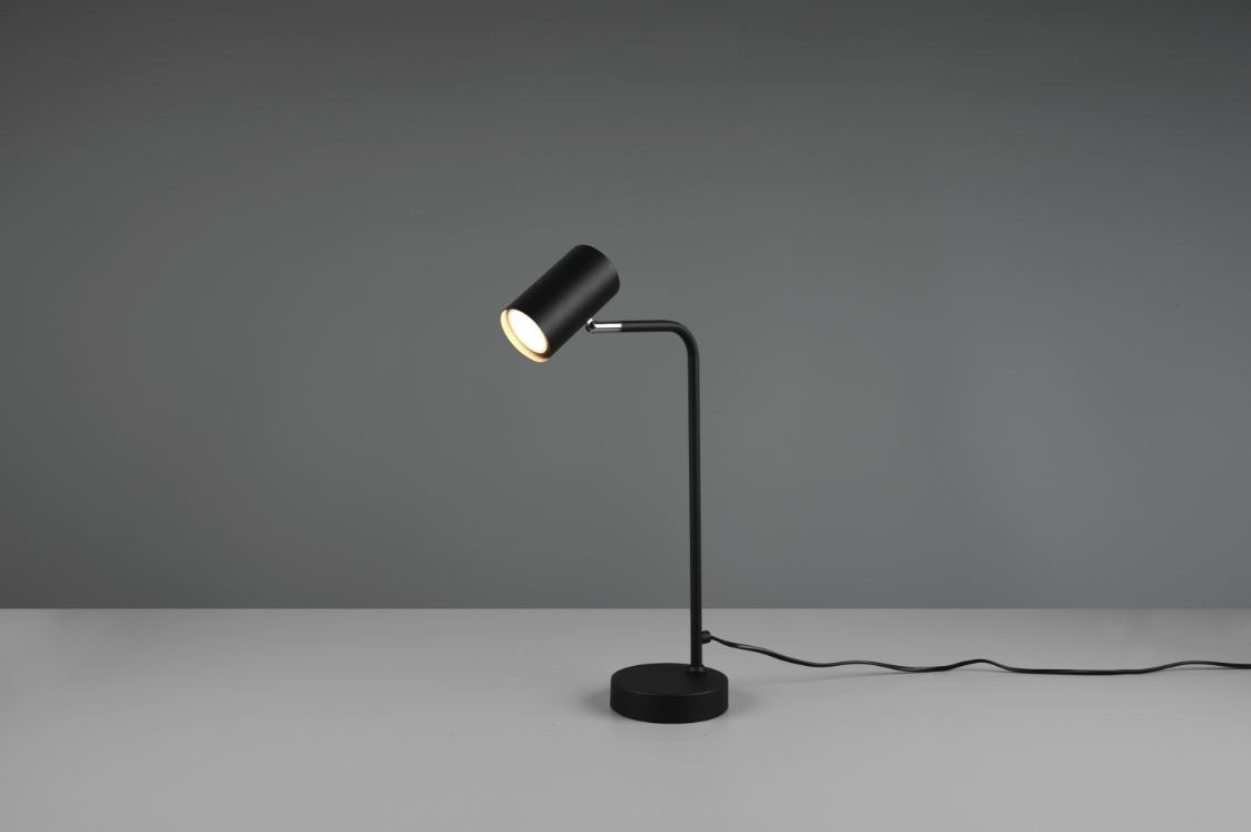 Een moderne tafellamp van het merk Trio. Deze lamp is gemaakt van metaal en uitgevoerd in de kleur mat zwart. Door de minimalistiche uitstraling past dit lampje in zowel klassieke als moderne interieurs. Plaats hem op een bureau, kast of bijzettafel, in de woonkamer of hal bijvoorbeeld om u van functioneel licht te voorzien. Er is plaats voor één GU10-fitting welke geschikt is voor een max. wattage van 5W. Deze lamp wordt exclusief lichtbron geleverd, u kunt hierdoor zelf bepalen hoeveel licht u wilt hebben. Deze armatuur wordt inclusief aan-/uitschakelaar geleverd. Doordat het kapje kantelbaar is, kan de lichtbundel eenvoudig in de juiste richting worden gericht.