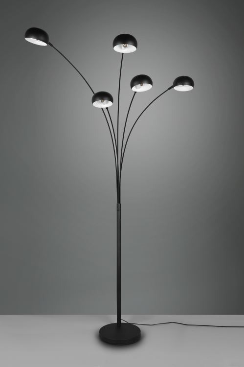 Een vloerlamp van Trio uit de RL-collectie. Deze vloerlamp is gemaakt van metaal en is uitgevoerd in de kleur mat zwart. Deze staande lamp beschikt over vijf lichtpunten. Elk kapje welke een diameter van 13,5 cm heeft, biedt plaats aan één E14-fitting die geschikt is voor een max. wattage van 10W. Deze armatuur van Trio wordt exclusief lichtbronnen geleverd. U kunt hierdoor zelf bepalen hoeveel licht u wilt hebben. Deze lamp met moderne uitstraling past in veel interieurs en kan goed worden geplaatst in de woonkamer naast de bank of een fauteuil bijvoorbeeld. De aan-/uitschakelaar bevindt zich op de armatuur.