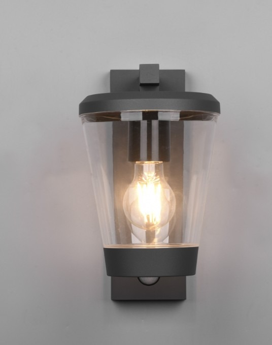 Een mooie lantaarn van het merk Trio. Deze wandlamp is gemaakt van gegoten aluminium en uitgevoerd in de kleur antraciet. Deze lamp met minimalistische uitstraling past goed op zowel klassieke als moderne schuttingen of gevels. Deze wandlamp is met een IP-waarde van 44 spatwaterdicht. De buitenlamp wordt exclusief lichtbron geleverd, u kunt hierdoor zelf bepalen hoeveel licht u wilt hebben. Achter het transparante heldere glas is plaats voor één E27-fitting die geschikt is voor een max. wattage van 40W. Wij adviseren een mooie filament (led)lamp die gezien mag worden. Deze armatuur schakelt automatisch aan via een bewegingsmelder.