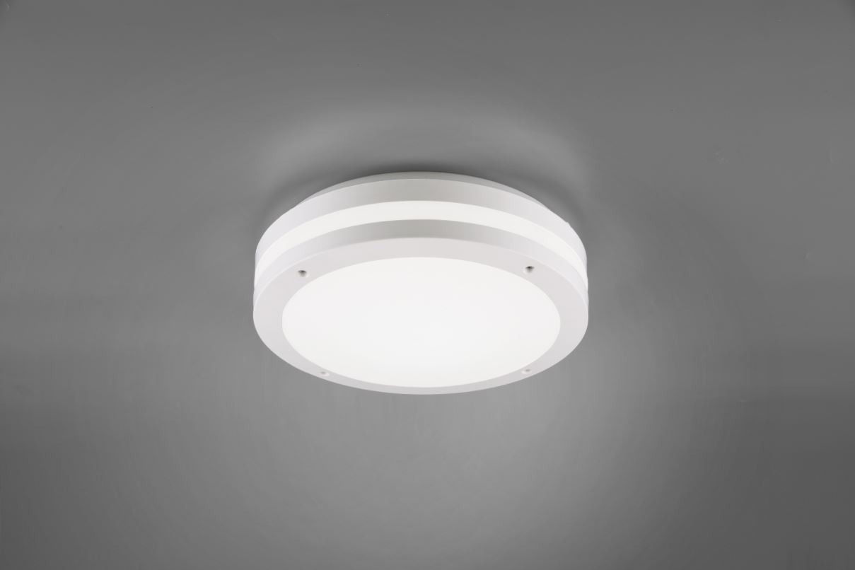 Een mooie plafondlamp voor buiten van het merk Trio. Deze elegante plafonnière is gemaakt van kunststof en uitgevoerd in de kleur wit mat. Met een IP-waarde van 54 is deze plafondlamp spatwaterdicht en stofvrij. Deze minimalistische plafondlamp kan goed onder bijvoorbeeld de overkapping geplaatst worden. Deze armatuur is overigens ook geschikt voor wandmontage. De lamp heeft een diameter van 30 cm en wordt geleverd inclusief geïntegreerde SMD-LED lamp met een wattage van 11W. De witte kap zorgt voor de verspreiding van aangenaam niet-verblindend diffuus licht. Deze armatuur schakelt automatisch in via een bewegingsmelder.