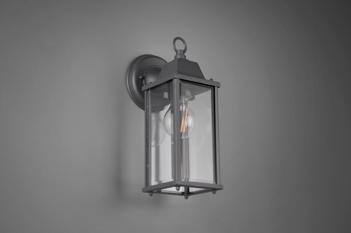 Een klassieke lantaarn van het merk Trio. Deze wandlamp is gemaakt van gegoten aluminium en uitgevoerd in antraciet. Met deze lamp met elegante uitstraling kunt u bijvoorbeeld goed uw entree verlichten. De wandlamp is met een IP-waarde van 23 regenwaterdicht. U kunt zelf de hoeveelheid licht bepalen, daar deze lamp exclusief lichtbron wordt geleverd, mits u het maximale wattage van 40W niet overschrijdt. Achter het transparante heldere glas is plaats voor één E27-fitting. Wij adviseren een mooie filament (led)lamp die gezien mag worden.
