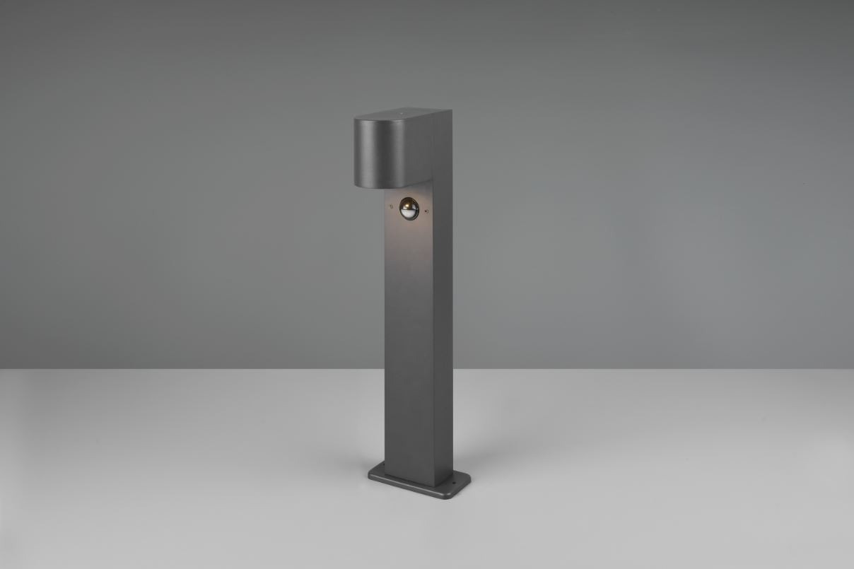 Een armatuur van het Duitse verlichtingsmerk Trio. Deze vloerlamp is vervaardigd uit gegoten aluminium en uitgevoerd in de kleur antraciet. Less is more, want dit paaltje is mooi in al zijn eenvoud. Kan goed naast het tuinpad geplaatst worden om u van functioneel licht te voorzien. Met een IP-waarde van 44 is deze lamp spatwaterdicht. De buitenlamp heeft één GU10-spot nodig die niet is inbegrepen, maar die afzonderlijk bijbesteld kan worden. Let hierbij op dat het maximale wattage van 35W niet wordt overschreden. De vloerlamp is 50 cm hoog. Liever een iets hoger paaltje? Vloerlamp Roya is er ook in een uitvoering die 1 m hoog is. Dankzij de bewegingssensor gaat de lamp automatisch aan wanneer er iemand in de buurt komt. Er kan ingesteld worden hoe lang de lamp aan blijft (10 sec - 8 min) en tot welke afstand (max. 4m) de sensor reageert. Eenmaal naar wens ingesteld, heeft u er geen omkijken meer naar.