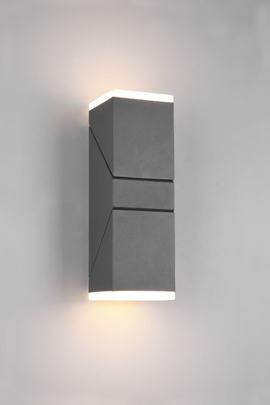 Een armatuur van het Duitse verlichtingsmerk Trio. Deze wandlamp is vervaardigd uit gegoten aluminium en uitgevoerd in de kleur antraciet. Op het eerste gezicht een eenvoudige lamp, maar de lichtpunten van deze lamp zijn 300° draaibaar. U kunt het licht elke kant op laten schijnen die u wenst. Of dit nu naar boven, naar onderen, naar voren, naar links of naar rechts is. Deze buitenlamp zal zich thuisvoelen op gevels of schuttingen in moderne voor- of achtertuinen. Met een IP-waarde van 54 is deze lamp stofvrij én spatwaterdicht. Energiezuinige lichtbronnen worden meegeleverd. Het gaat om geïntegreerde LED-modules met een wattage van 7W. De lichtopbrengst van het warm witte licht (3000K) is 800 lumen.