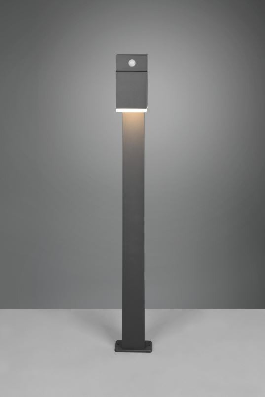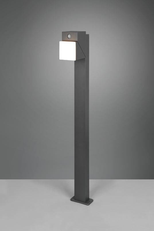 Een mooie vloerlamp van het merk Trio. Dit paaltje met een hoogte van 100 cm is gemaakt van gegoten aluminium en uitgevoerd in de kleur antraciet. Deze buitenlamp met simplistische uitstraling kan goed langs het tuinpad worden geplaatst om u van functioneel licht te voorzien. Op het eerste gezicht een eenvoudige lamp, maar het lichtpunt van deze lamp is 300° draaibaar. U kunt het licht elke kant op laten schijnen die u wenst. Of dit nu naar boven, naar onderen, naar voren, naar links of naar rechts is. Deze vloerlamp is met een IP-waarde van 54 spatwaterdicht én stofvrij. Een energiezuinige lichtbron wordt meegeleverd. Het gaat om een geïntegreerde LED-module met een wattage van 7W. De lichtopbrengst van het warm witte licht (3000K) is 800 lumen. Dankzij de bewegingssensor gaat de lamp automatisch aan wanneer er iemand in de buurt komt. Er kan ingesteld worden hoe lang de lamp aan blijft (8 sec - 5 min) en tot welke afstand (max. 6 m) de sensor reageert. Eenmaal naar wens ingesteld, heeft u er geen omkijken meer naar.