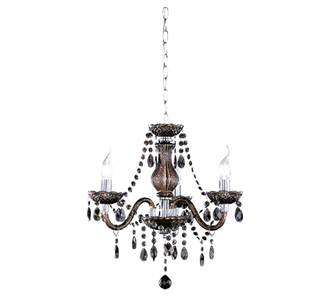 Een mooie kroonluchter van het merk Trio. Deze elegante hanglamp is gemaakt van metaal en uitgevoerd in de kleur chroom. Deze klassieke lamp kan goed worden toegepast in de hal, woonkamer of boven de eettafel in de eetkamer. Deze kroonluchter beschikt over drie armen met decoratieve hangers van transparant zwart acrylglas. De hanglamp wordt exclusief lichtbronnen geleverd. Elke arm biedt plaats aan één E14-fitting (max. wattage 40W) die niet is inbegrepen, maar die afzonderlijk bijbesteld kan worden. Wij adviseren mooie tipkaarsen die gezien mogen worden.