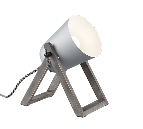 Een bijzonder leuk tafellampje van het Duitse verlichtingsmerk Trio. Door de combinatie van het metalen kapje met het onderstel van natuurlijk materiaal (vergrijsd hout) past dit lampje in tal van interieurstijlen. Het grijze metalen kapje heeft een diameter van 12 cm en biedt plaats aan één E27-fitting die geschikt is voor een max. wattage van 25W welke niet is inbegrepen, maar die afzonderlijk bijbesteld kan worden. Wij adviseren een energiezuinige LED lichtbron. Zelfs als het lampje uitstaat is het een stijlvol accessoire dat de aandacht trekt. Plaats het op een kast of bijzettafel met bijvoorbeeld een klein plantje ernaast. Het anderhalve meter lange strijkijzersnoer beschikt over een schakelaar. Dankzij de stelschroeven aan de zijkant kan de lichtbundel in de gewenste richting worden gericht.
